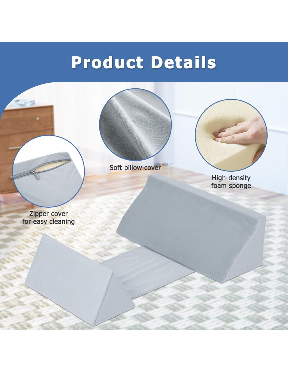 - Material suave y fácil de limpiar: Los cojines en cuña triangulares vienen con fundas removibles y lavables a máquina, lo que hace que sean muy fáciles de cuidar. Al mismo tiempo, el tejido suave de alta calidad te proporcionará una noche de sueño cómoda.