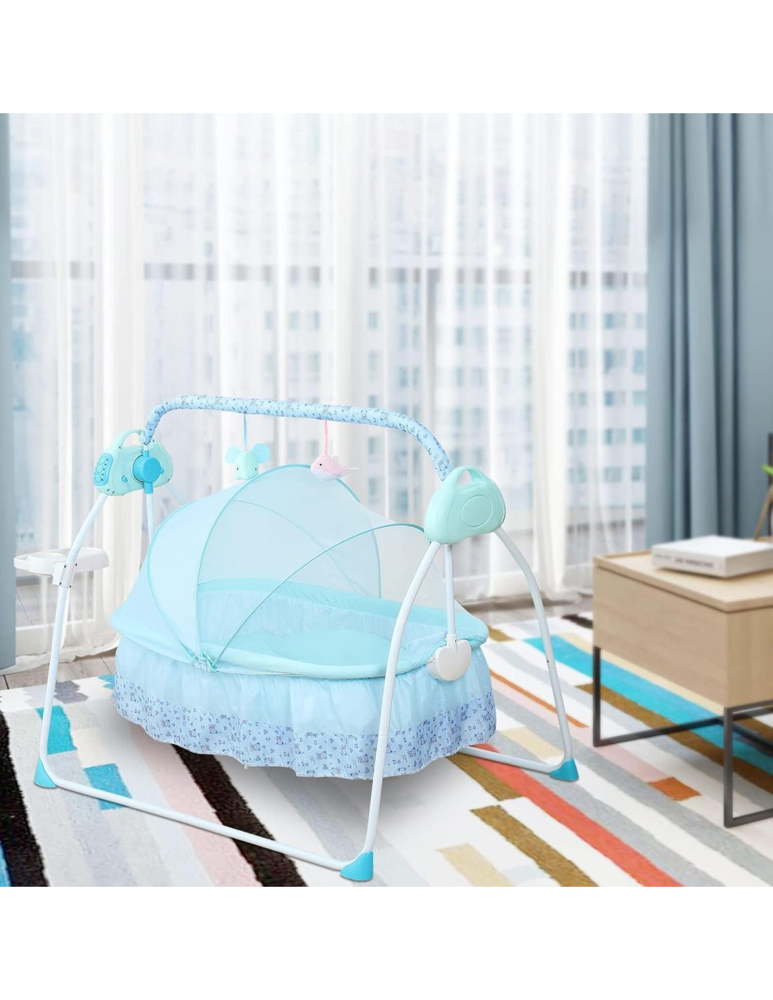 Especificaciones: Materiales de protección ambiental: durazno (tela amigable con la piel, transpirable y absorbente de sudor, universal en todas las estaciones), tubo de acero grueso, pintura horneada, aplicación de ABS: 0-18 meses. Peso del producto: 6 kg. Peso bruto: 6.25 kg. Capacidad de carga: 25 kg (55 lbs). Color: azul. Incluye 12 piezas de música + reproducción de MP3 + disco USB enchufable + colchón de imitación de abrazo + almohada + red anti-mosquitos + cinturón de seguridad + plegable + lavado y plegado + desmontaje sin herramientas + soporte para botellas. Función: 5 velocidades de oscilación ajustables, temporizador. Tamaño del producto: 103*75*86 cm (40.5*29.53*33.86 in). Tamaño de la cuna: 95*52 cm (37.4*20.47 in). El paquete incluye: 1 x mecedora para bebés, 1 x red anti-mosquitos transpirable, 1 x colchón de imitación de abrazo, 1 x almohada con forma, 1 x estante para juguetes, 1 x soporte para botellas. Nota: Dentro de los 3 meses, la adaptabilidad del bebé es más débil y es fácil que llore al principio. Al principio, no encienda el motor eléctrico y necesita adaptarse lentamente. Ruido: el motor principal es impulsado por engranajes. Al balancearse, habrá un sonido del reloj. El oscilador no puede balancearse: al mecer, conecte el cinturón de fijación en la parte inferior de la cama; después de instalar la cama, el soporte debe estar completamente extendido; al oscilar, necesita suficiente espacio para balancearse y evitar obstáculos. Velocidad del oscilador demasiado rápida: el cliente puede ajustar la marcha según el peso del niño. Si el niño es ligero, el cliente puede activar la marcha 1-2.