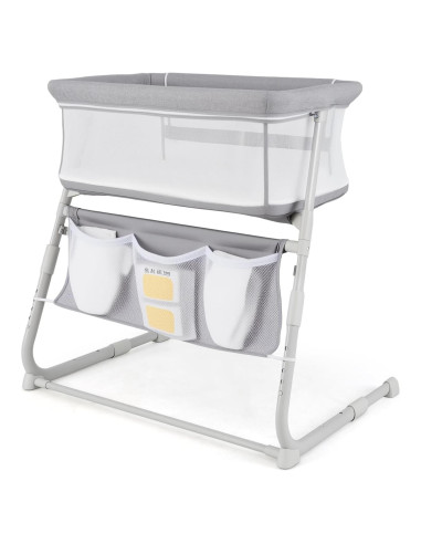 Descripción: ¡Proporciona una solución de co-sueño segura para tu bebé! Esta cuna funciona como una cuna independiente y como una cuna lateral. Con 5 configuraciones de altura y patas telescópicas para ajuste, asegura una alineación perfecta con cualquier cama de adulto. El colchón suave sobre una tabla de soporte resistente proporciona comodidad. Las características de seguridad incluyen un marco de metal sólido, correas de seguridad y malla transpirable para un flujo de aire óptimo. Con bolsillos de malla integrados para lo esencial, las alimentaciones y cambios nocturnos son más manejables. Características: Puede usarse como cuna independiente o cuna lateral Vendrá con 2 correas de seguridad para la instalación en la cama de adulto Fácil y seguro de usar con conexión de hebilla 5 alturas ajustables (62.2 cm/64.8 cm/67.3 cm/69.9 cm/72.4 cm) para camas de adultos de diferentes alturas Adaptable a varios entornos con patas telescópicas Asegura un flujo de aire óptimo con lados de malla completa Soporte y comodidad para dormir toda la noche Incluye un colchón acolchado lavable Acceso fácil a los esenciales del bebé con bolsillos de malla Construcción robusta y estable para durabilidad Marco de metal grueso y travesaños aseguran mejor estabilidad Hecho de materiales de tela robustos y seguros para niños Estabilidad confiable con almohadillas antideslizantes Cumple con ASTM y CPSIA Especificaciones: Color: Gris Material: Metal + Tela + Malla Dimensiones Generales: 94 cm x 69.9 cm/80 cm x 94.0 cm-105.4 cm (L x W x H) Dimensiones de la Cuna: 85.1 cm x 49.5 cm x 33 cm (L x W x H) Edad Adecuada: 0-6 meses Capacidad de Peso: 30 kg Peso Neto: 7.7 kg Paquete Incluye: 1 x Cuna Lateral para Bebé 2 x Correa de Seguridad 1 x Guía del Usuario