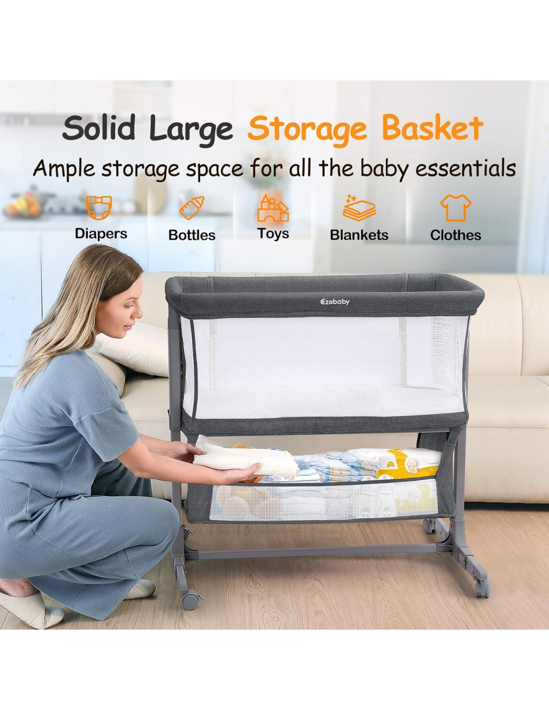 - Cuna para Bebé con Ruedas y Almacenamiento: Esta cuna lateral está equipada con ruedas giratorias, lo que permite una movilidad sin esfuerzo de una habitación a otra. Mamá puede mantener al bebé cerca durante el día con facilidad. Las canastas de almacenamiento espaciosas pueden contener todos los esenciales del bebé para mayor comodidad.