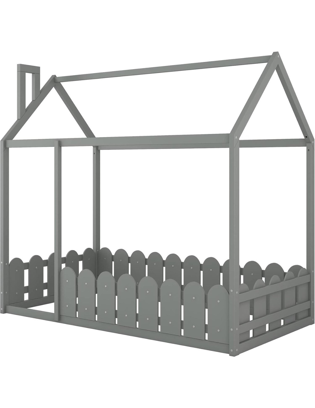 - [Cama en el Suelo Tamaño Individual con Dos Opciones de Colocación] Esta cama en el suelo tamaño individual es un regalo perfecto para niños y niñas. La cama montessori tamaño individual con marco de techo de casa está rodeada por cuatro lados por una barandilla alta y tiene una puerta abierta. La cama en el suelo tamaño individual tiene 2 formas de colocación, se puede colocar al revés para obtener una cerca envolvente, un sentido de seguridad.