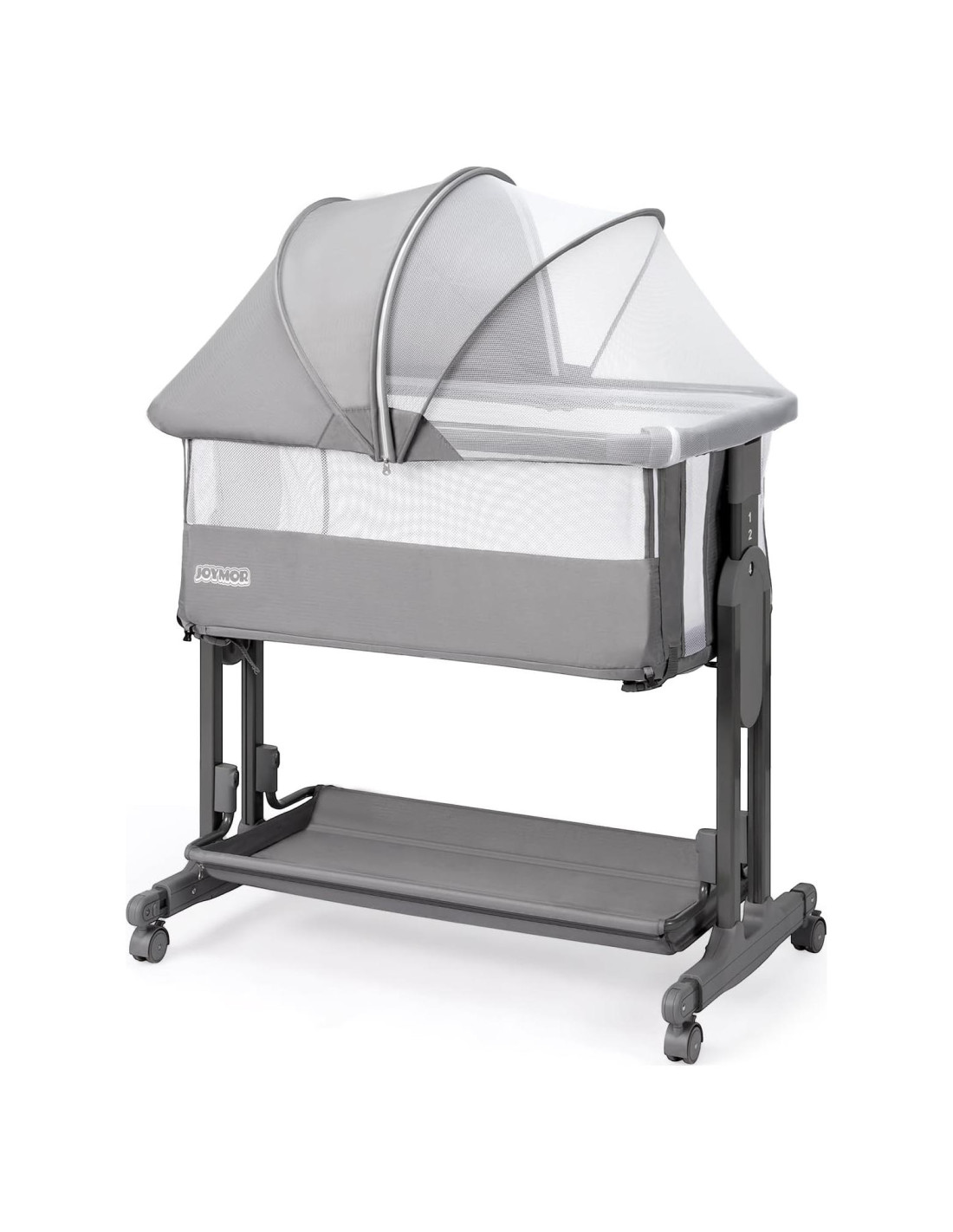 Presione el botón para convertir fácilmente en modo cuna. Colchón suave con funda de 100% algodón, cómodo y transpirable. Fácil de quitar y lavar la tela. Malla en cuatro lados facilita la circulación de aire y la disipación del calor. Un lado es de tela para bloquear la luz, mientras que el lado de malla es para ventilación y protección contra mosquitos. Simplemente extienda la pierna con un botón para aumentar la estabilidad. Las patas más anchas pueden soportar más peso. Ofrece movilidad sin esfuerzo, reduciendo el ruido y protegiendo los pisos. Perfecto para cualquier espacio. Marcos de aluminio sólidos y duraderos, más seguros, robustos y fáciles de mover. Con 3 correas de seguridad para sujetar a la cama de los padres, la cuna con un lado abierto es fácil para el cuidado del bebé. La cuna lateral JOYMOR se convierte fácilmente en cuna para bebé, cunas laterales y parque, satisfaciendo las necesidades de diferentes períodos.