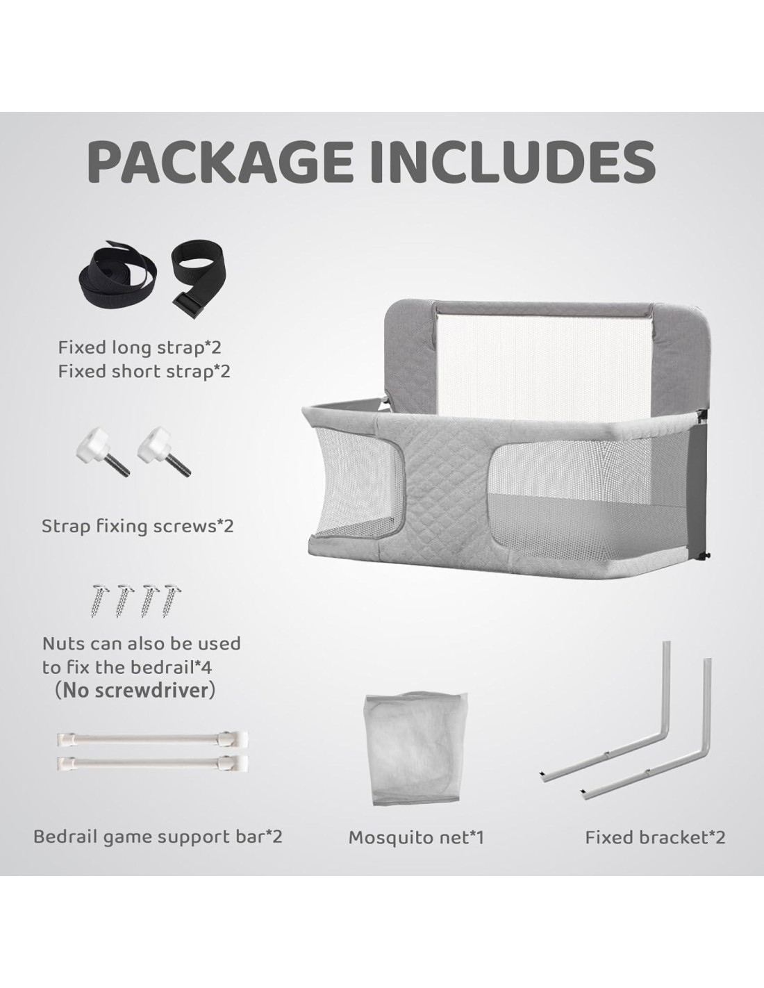 Transforma tu experiencia de crianza nocturna con esta innovadora cuna lateral que mantiene a tu pequeño cerca mientras asegura seguridad y comodidad. El diseño moderno y elegante cuenta con lados de malla transpirable para un flujo de aire y visibilidad óptimos, mientras que el marco gris acolchado añade estabilidad y estilo. Perfecta para arreglos de co-sueño, esta cuna se adhiere de manera segura a tu cama, permitiendo un fácil acceso para la alimentación y el vínculo nocturno. Las configuraciones de altura ajustables se adaptan a varias alturas de cama, haciéndola versátil para diferentes configuraciones de dormitorio. La construcción resistente incluye un cómodo colchón y barandillas protectoras en todos los lados. Ideal para recién nacidos e infantes, esta cuna lateral proporciona un espacio de sueño dedicado mientras mantiene a tu bebé al alcance de la mano. El diseño liviano facilita su movimiento, y la paleta de colores gris neutro complementa cualquier decoración de dormitorio.