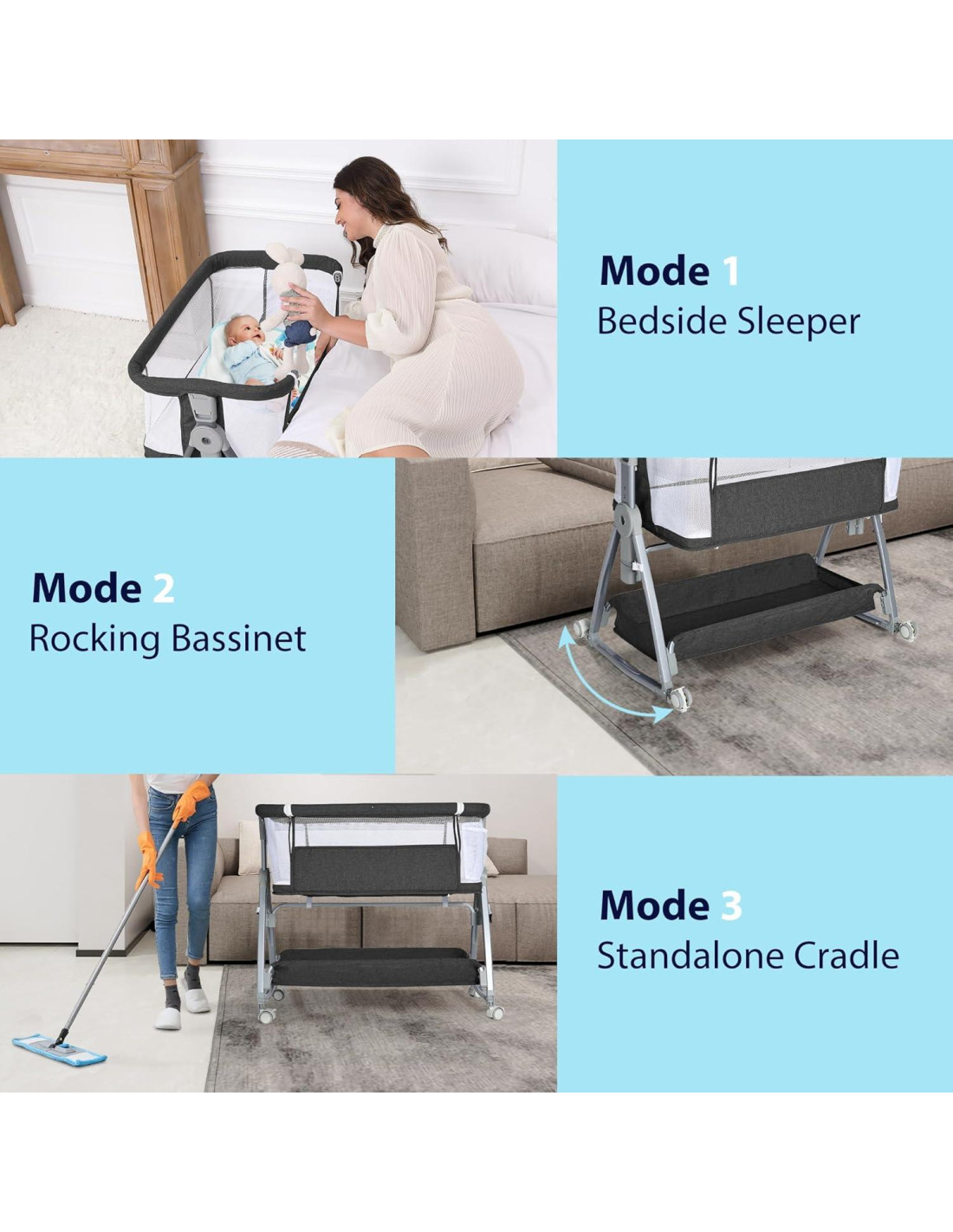 - CUNA JUNTOS A LA CAMA 3 EN 1 PARA BEBÉ: La cuna de lado Luvkixen para bebé puede funcionar como cuna junto a la cama, cuna mecedora o cuna independiente. Cambia fácilmente entre modos ajustando las ruedas o bajando la barra lateral. Además, las ruedas bloqueables garantizan estabilidad, brindándote tranquilidad mientras tu bebé duerme.