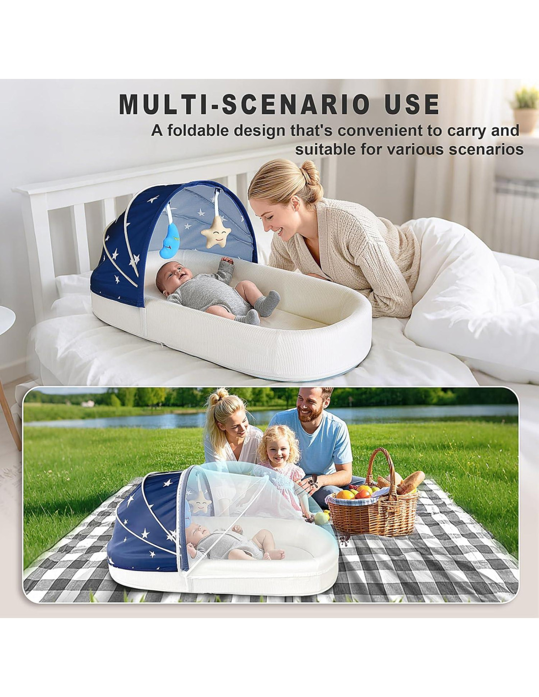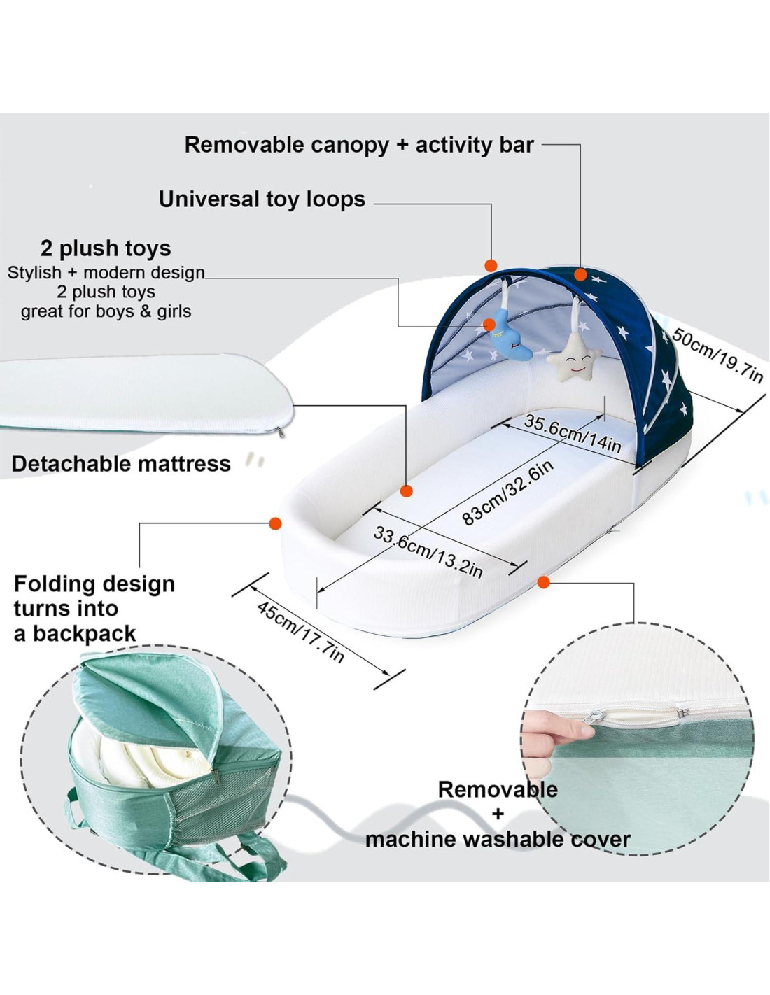 - Cuna portátil para bebés: Incluye toldo desmontable y red para mosquitos para bloquear la luz solar, insectos y distracciones, ideal para uso en interiores y exteriores. Diseño ligero y plegable con mochila de transporte que asegura fácil portabilidad, creando un espacio de sueño acogedor para recién nacidos en cualquier lugar.