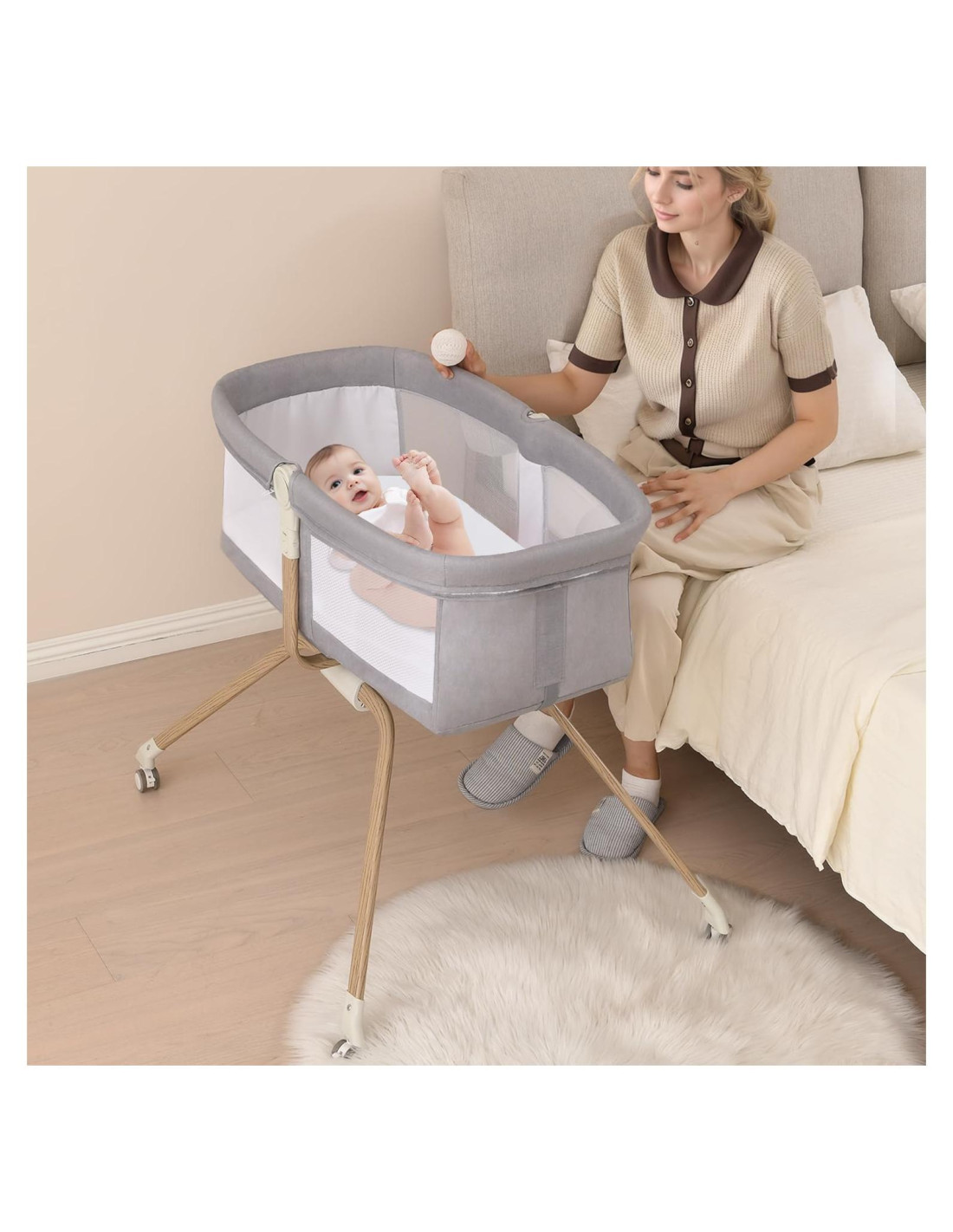 - Malla de Aire en Todos los Lados: Rodeada de malla suave y transpirable en todos los lados, esta cuna asegura un flujo de aire óptimo para mantener a su bebé fresco y cómodo.