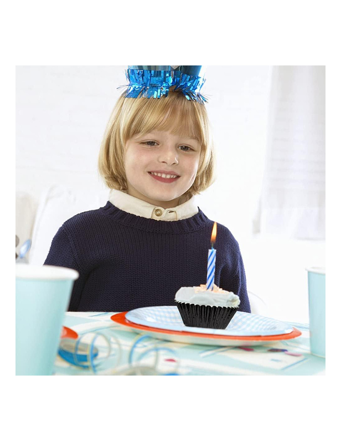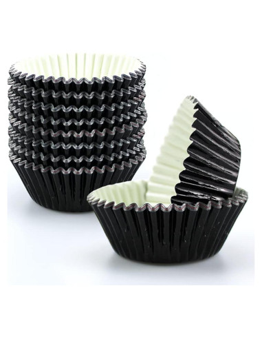 - Forros de cupcake de foil negro, perfectos para cualquier ocasión: la mejor opción para realzar tu cumpleaños, boda, baby shower, fiesta navideña, celebraciones temáticas con forros de cupcake de foil estándar. diviértete con los niños, amigos y clientes haciendo cupcakes elegantes con estos forros de cupcake elegantes.