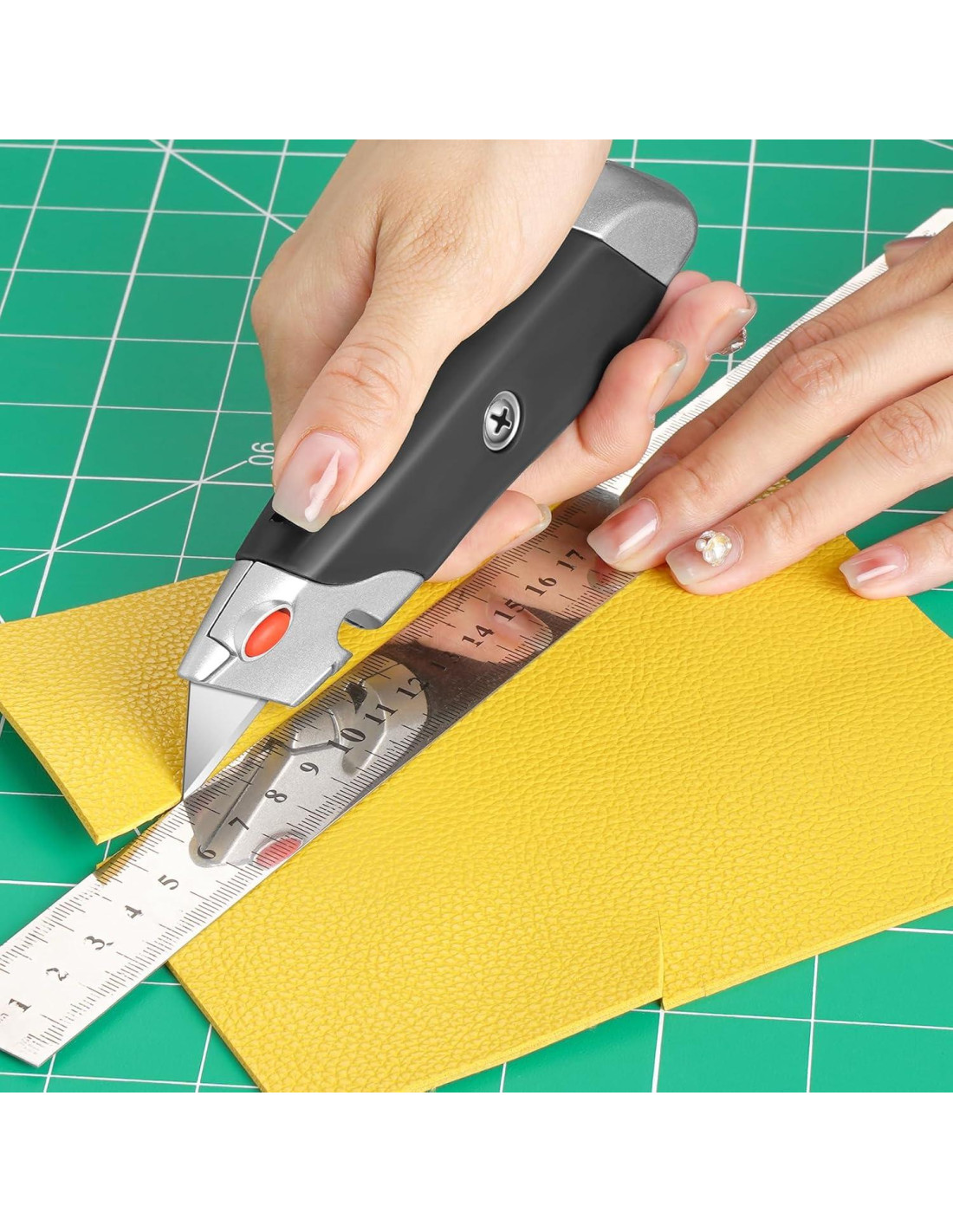 - Diseño de cuchillo de utilidad de alta resistencia: Este cuchillo de utilidad está fabricado con metal duradero y un agarre de goma resistente, asegurando un uso prolongado y duradero. Su diseño de servicio pesado permite un corte sin esfuerzo a través de varios grosores de cajas, empaques de plástico y correas, brindándote una experiencia de corte increíblemente duradera.