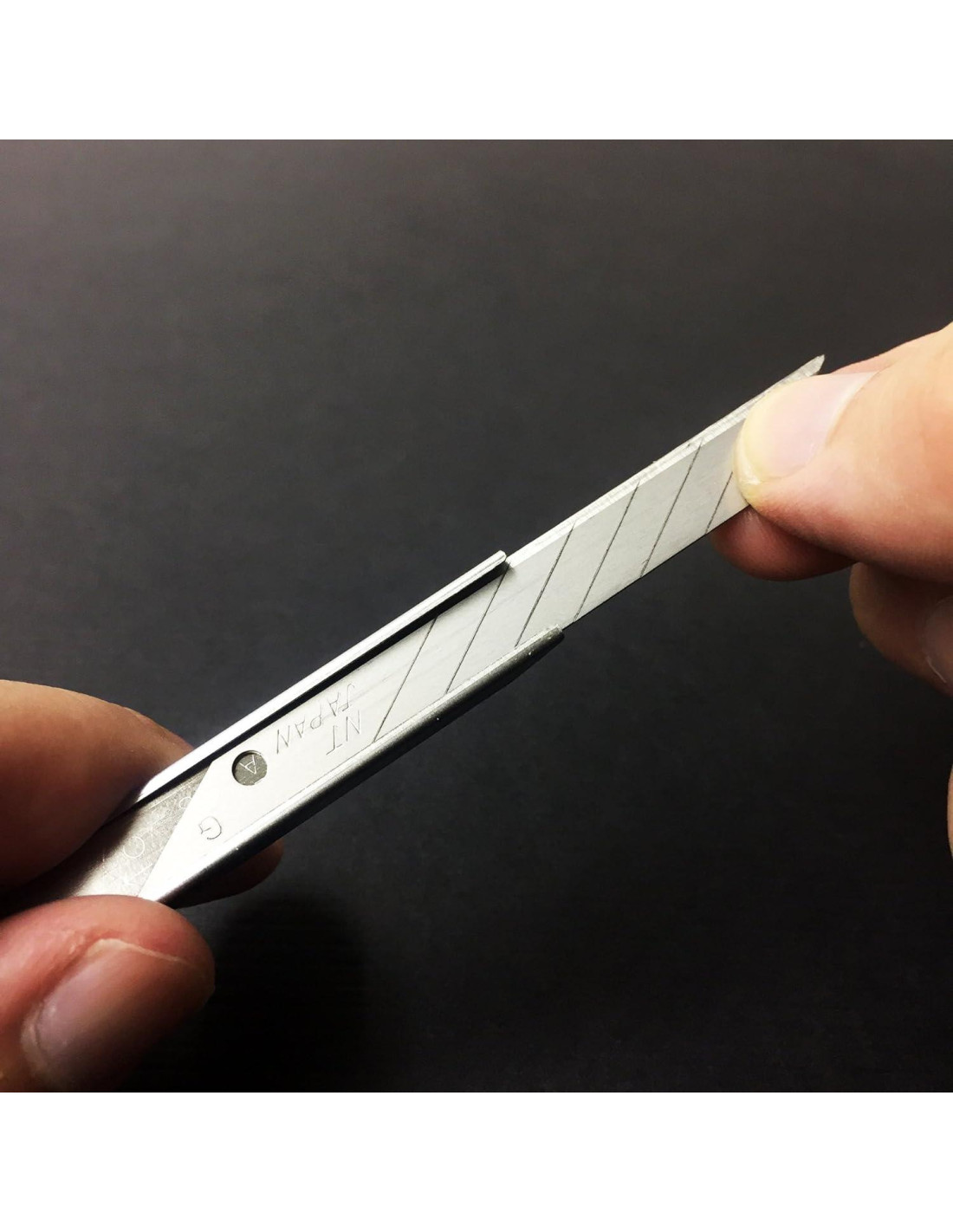 El cuchillo de hoja desechable de tipo cartucho de 30 grados de NT tiene un soporte de ABS de calidad profesional con un borde redondeado suave para proteger las superficies de corte de rasguños. Este cuchillo utilitario de hoja desechable de 30 grados es la herramienta elegida para películas de ventana y envolturas gráficas de vehículos. El sistema de bloqueo automático no está equipado intencionalmente en este modelo, para permitir que la hoja se retraiga cuando sea necesario para evitar cortar demasiado profundo y rasguñar accidentalmente el vidrio o la carrocería del automóvil. Sostiene hasta 5 hojas de repuesto de 30 grados, el cuchillo de cartucho de múltiples hojas es conveniente para trabajos que requieren un suministro constante de nuevas hojas y máxima eficiencia de corte. Simplemente retire la hoja vieja y una nueva hoja aparecerá automáticamente en posición. El soporte de ABS es muy duradero y con el cartucho de metal interno, se agrega protección adicional contra cualquier presión externa ejercida sobre este cortador. La tapa final también funciona como un cortador de hojas. Las hojas utilizadas en este cuchillo profesional de hoja desechable están hechas de acero de herramienta de carbono de alta calidad y producidas a través de múltiples etapas de un proceso preciso para obtener la máxima agudeza y óptima retención de filo. Este cuchillo de cartucho viene con dos hojas de acero al carbono. Hecho en Japón.
