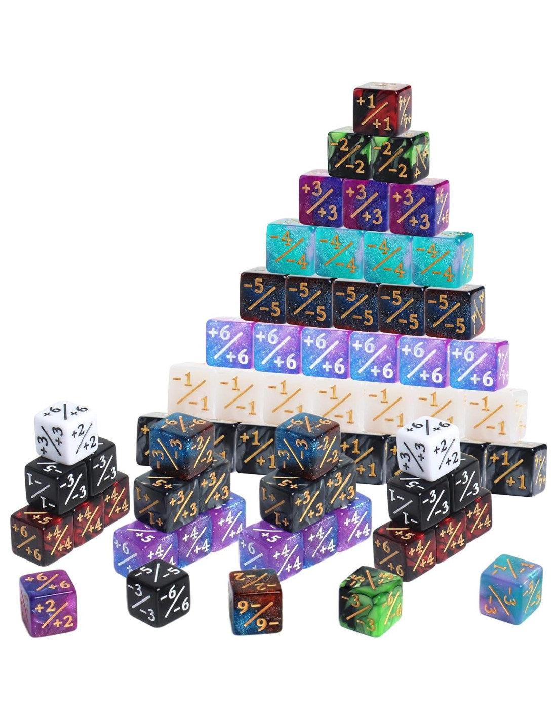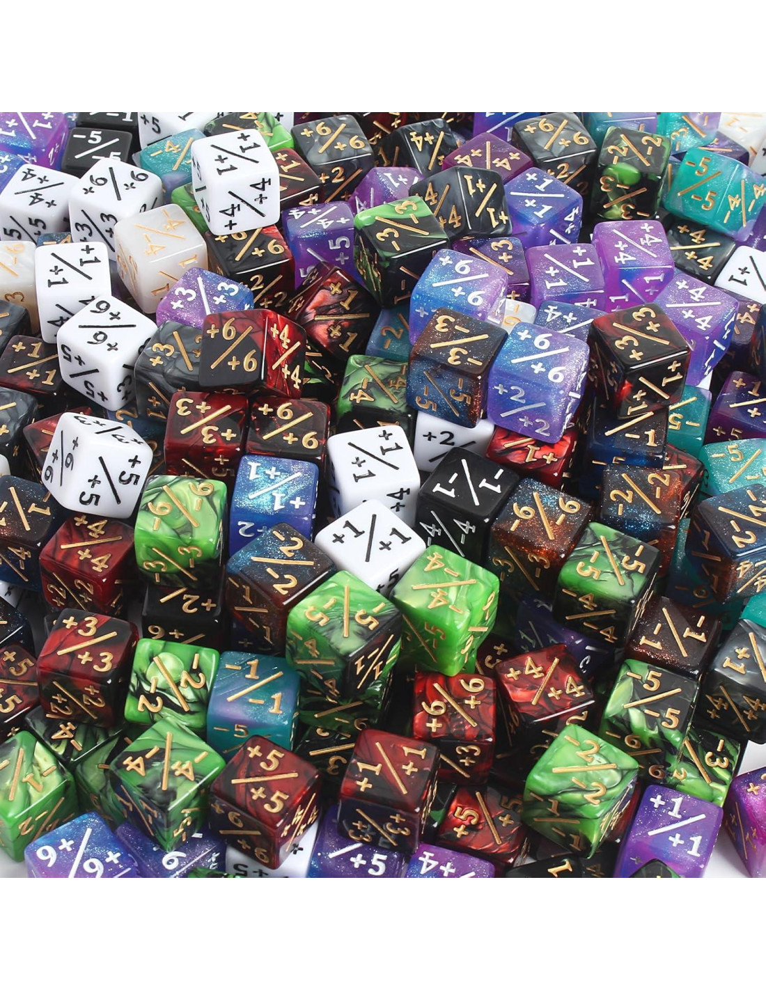 - Cantidad: Viene con 400 piezas de contadores de juego de dados, incluyendo 200 piezas de contadores de dados positivos y 200 piezas de contadores de dados negativos en 10 colores