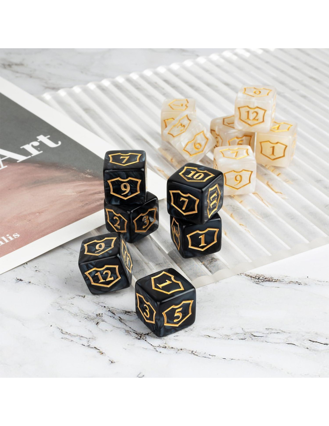 - Fácil de Leer: Cada dado MTG tiene un diámetro de aprox. 16 mm/ 0.63 pulgadas, que es más grande que los dados estándar (12 mm/0.47 pulgadas de diámetro), Estos dados MTG tienen letras pintadas en dorado que son lo más grandes posible en cada superficie para una fácil lectura.