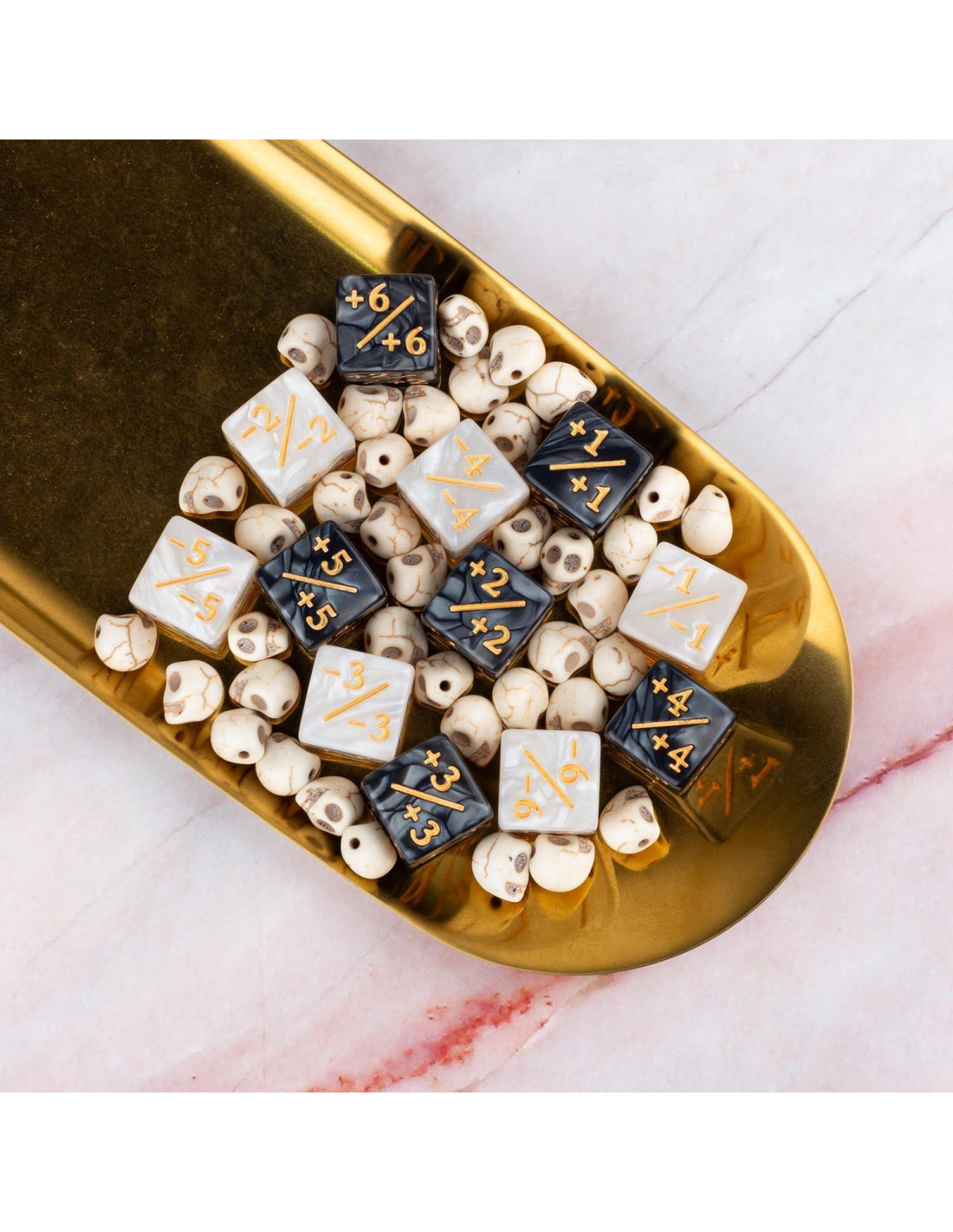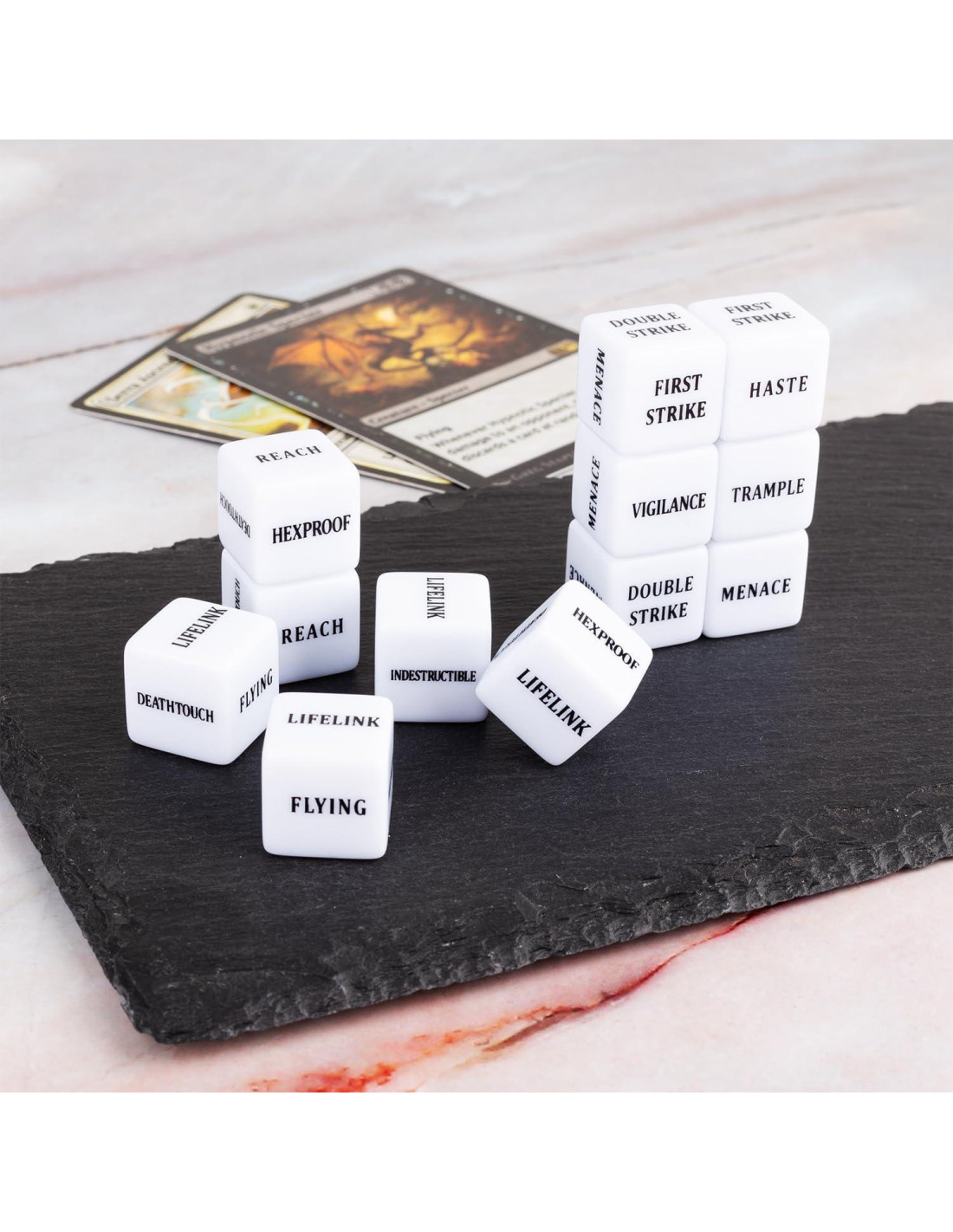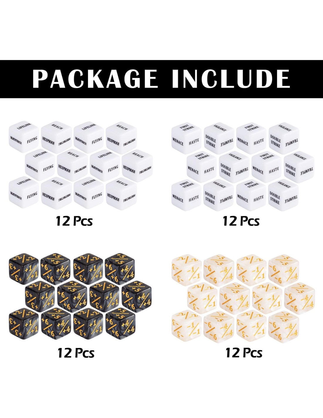 - Incluye: Total 24 piezas de dados de palabras clave MTG (VINCULACIÓN DE VIDA, ALCANCE, VOLAR, HEXPROTECCIÓN, TOQUE MORTAL, INDESTRUCTIBLE / VINCULACIÓN DE VIDA, ALCANCE, VOLAR, HEXPROTECCIÓN, TOQUE MORTAL, INDESTRUCTIBLE) y 24 piezas de contadores de dados (12 piezas -1~-6 contadores y 12 piezas +1~+6 contadores) con bolsa de terciopelo.