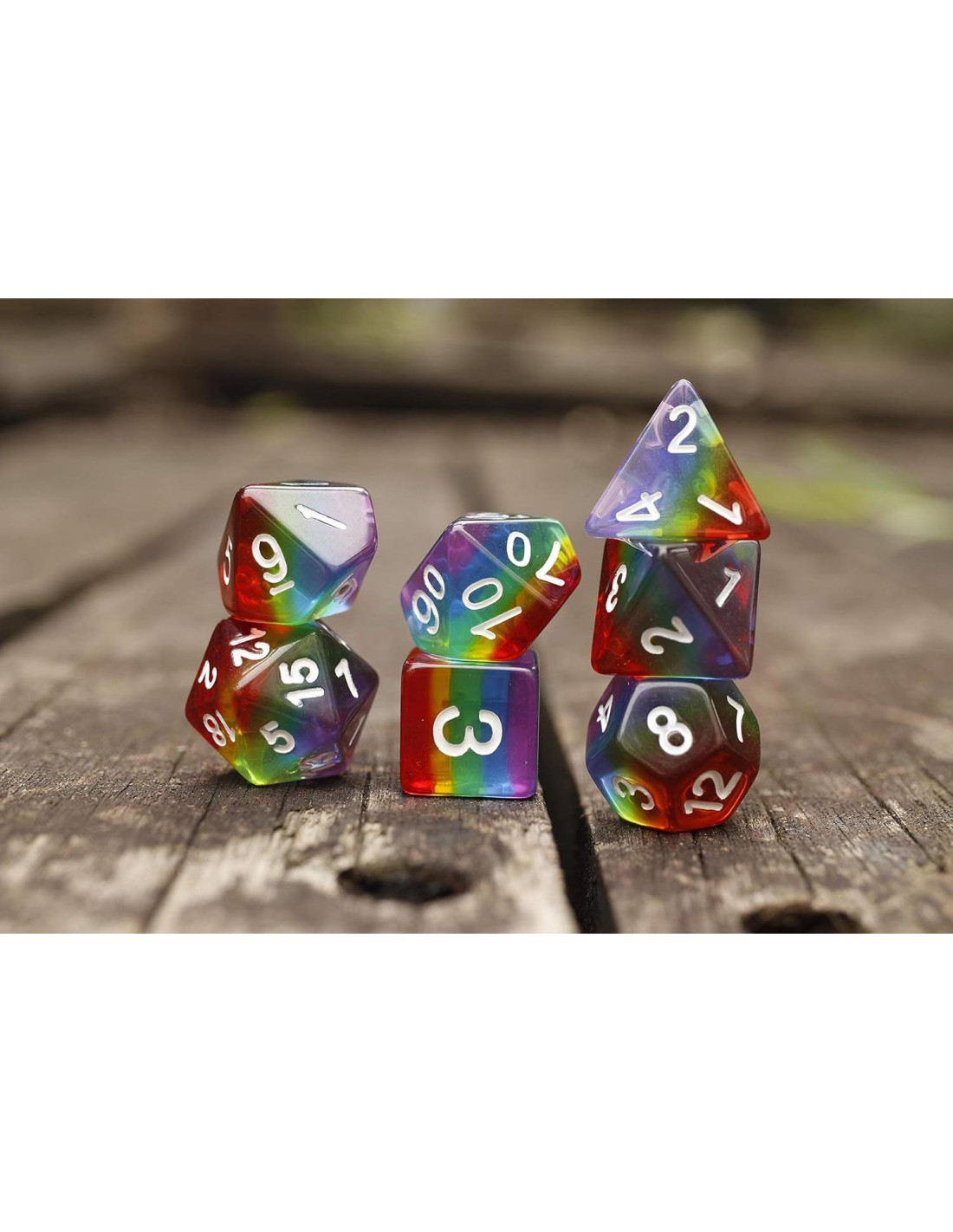 - Este es un dado de diseño arcoíris RPG que te sorprenderá, increíblemente hay púrpura, azul, verde, amarillo y rojo en 7 capas de diferentes colores en dados transparentes, desde el mejor ángulo visual, es como si un arcoíris estuviera en tus manos