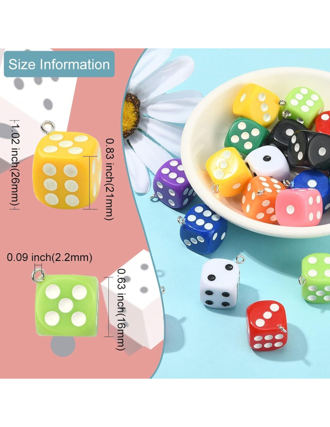 - Material: Estos encantos colgantes exquisitos están hechos de material plástico, 10 colores, con asas de hierro chapadas en platino, encantos de dados, también duraderos y resistentes, ligeros, no fáciles de romper o deformar, fáciles de usar y llevar, se pueden aplicar durante mucho tiempo.