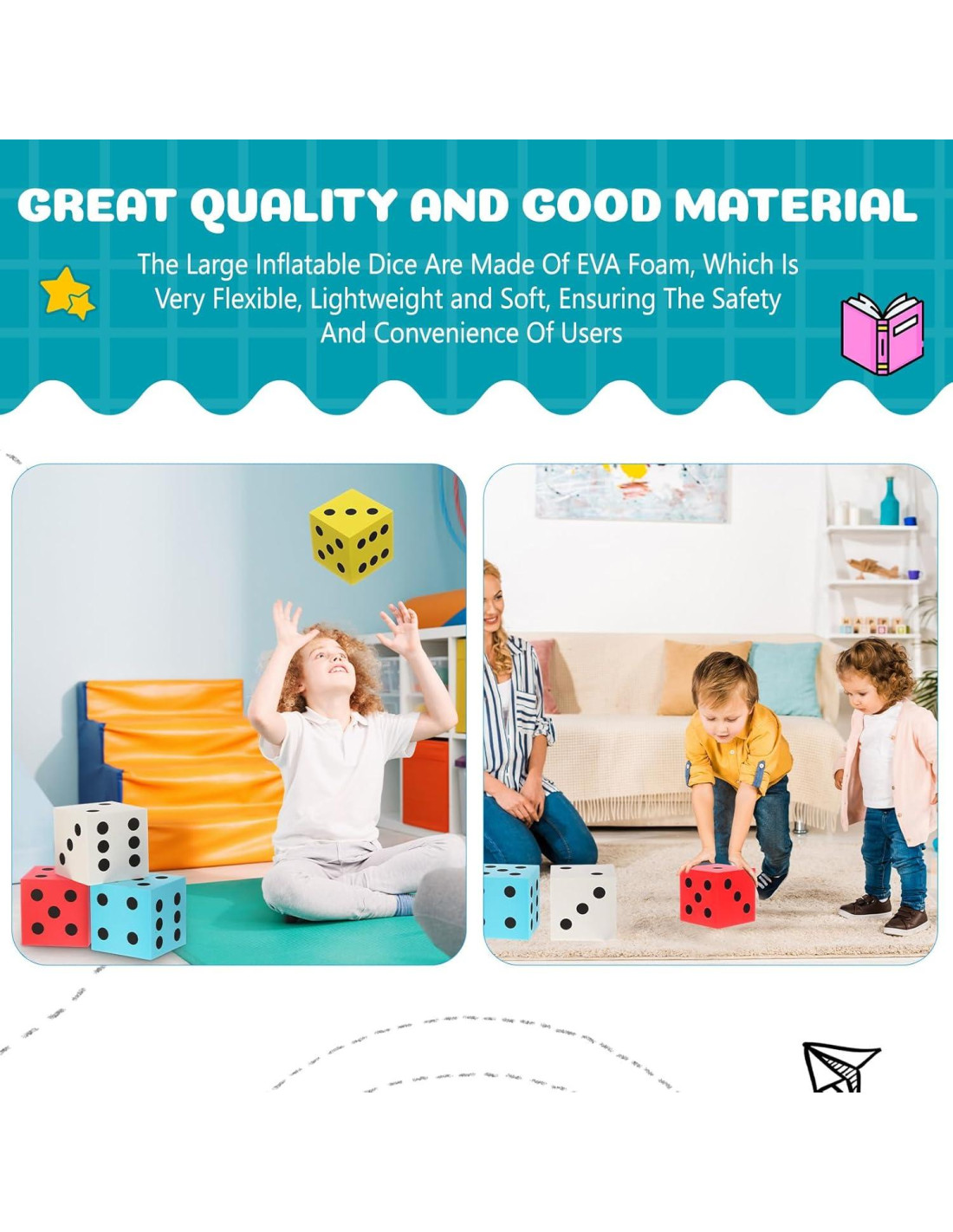 - Dados Multipropósito: ya sea para fines educativos en aulas, o para juegos enérgicos en fiestas, estos dados de espuma gigantes son agradables; Su material de espuma suave también los hace livianos para que los niños los lleven y jueguen en fiestas o en su patio trasero; Adecuados para uso en el aula, juegos infantiles, bloques de construcción, enseñanza de matemáticas, etc.; Ideales para que los niños jueguen; Además, cuenta con puntos sólidos negros; Seguro y divertido para que los niños jueguen o realicen actividades educativas