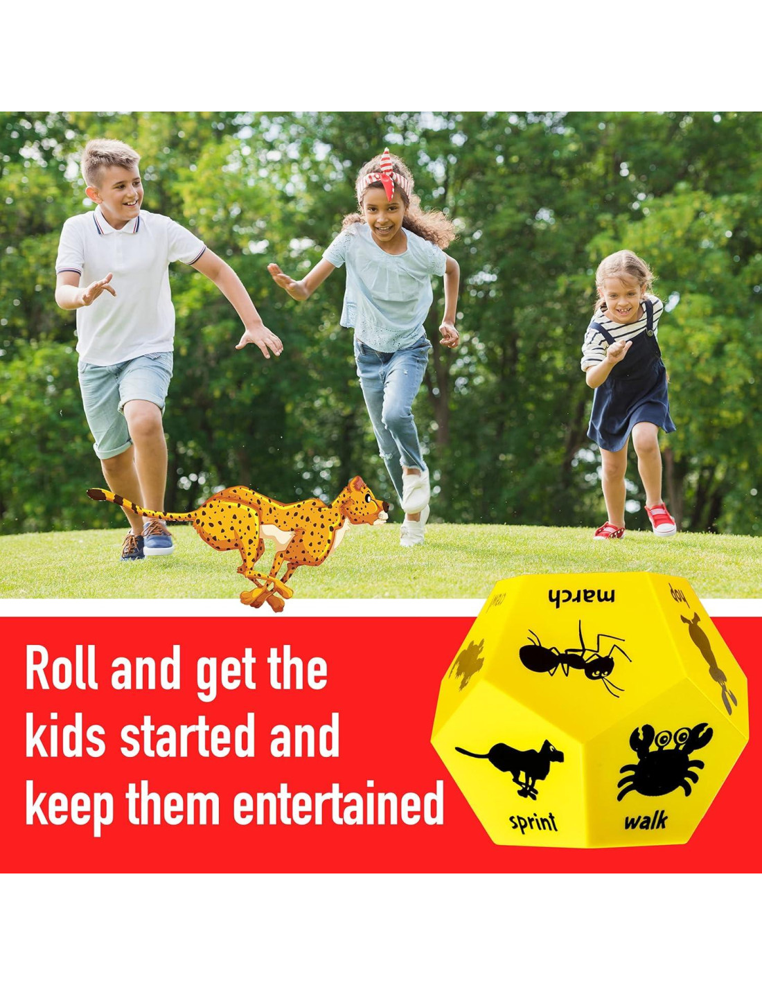 - Diversión activa sin fin en un solo conjunto: Este paquete combina 4 dados de espuma grandes de 4 pulgadas (10.16 cm): animal, acción, movimiento y yoga. Juntos, crean cientos de combinaciones emocionantes para el juego activo, el ejercicio y el aprendizaje.