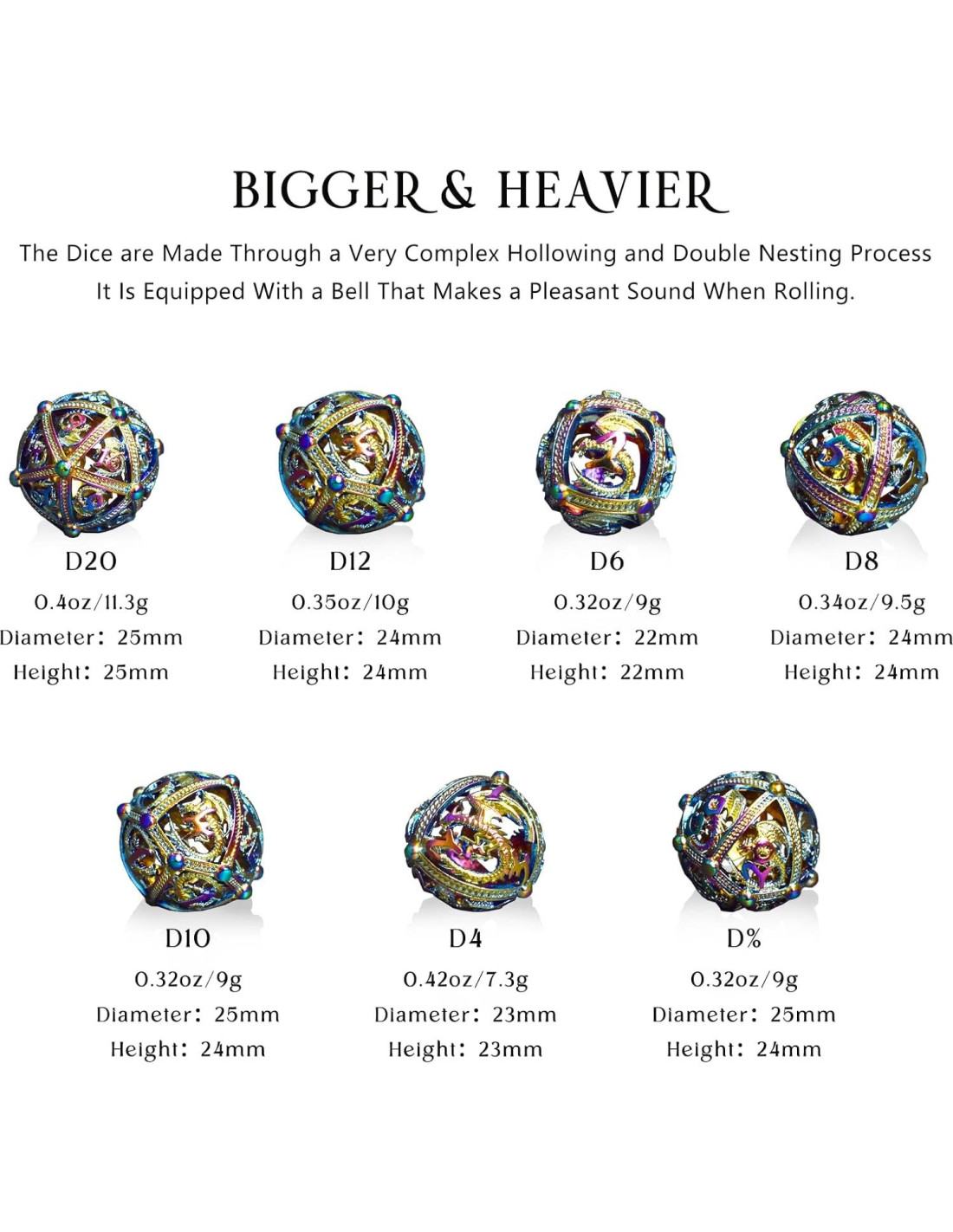 - Ampliamente Usado: Este set de dados de metal dnd es perfecto para juegos de dados de RPG de mesa como Dungeons and Dragons, Shadowrun, Pathfinder, Magic the Gathering, Heroscape, Savage World, Warhammer, Yahtzee y muchos otros juegos basados en dados.