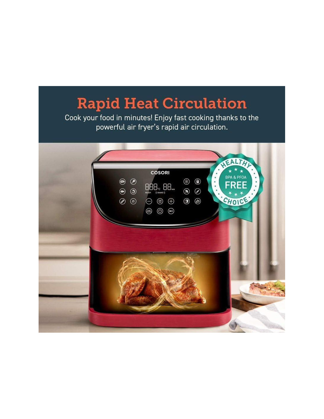 - DISEÑADO EN CALIFORNIA: La Freidora de Aire Premium COSORI tiene una pantalla ergonómica mejorada con un ángulo especial que proporciona una mejor visualización, sin necesidad de agacharse. Un diseño más delgado se adapta a tu encimera y ahorra espacio.