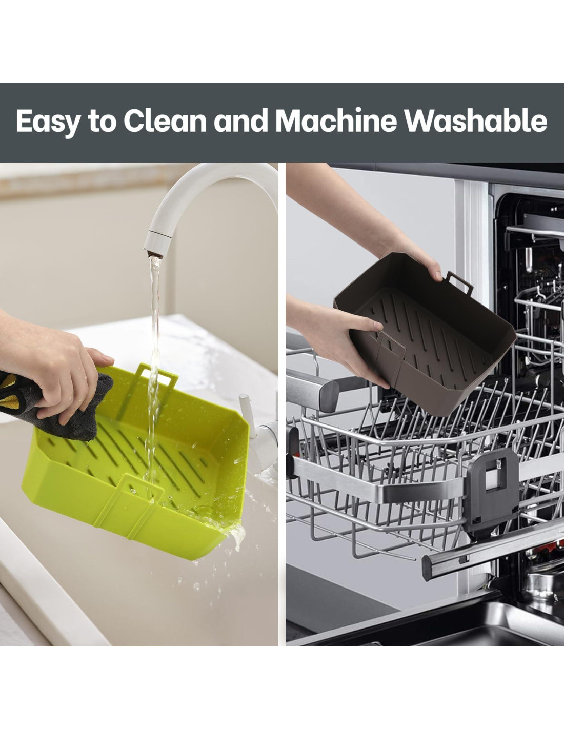 - FÁCIL DE LIMPIAR: ¿Cansado de fugas aceitosas de los forros de papel? ¡Mejora a los forros reutilizables para freidora de aire de NEWITEE! Suaves, flexibles y fácilmente limpiables a mano (con agua tibia) o en lavavajillas, sin residuos pegajosos ni fugas de aceite. Di adiós a las manchas grasosas y al fregado interminable. Estos forros mantienen tu canasta de freidora de aire impecable mientras ofrecen durabilidad duradera.