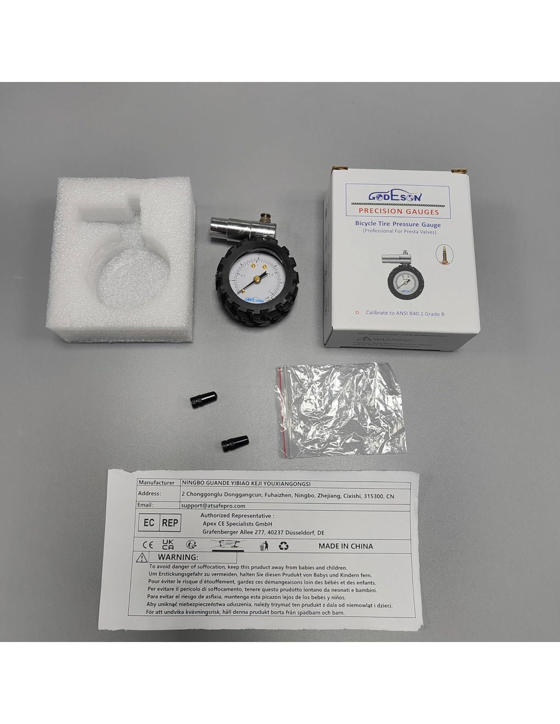 GODESON se especializa en diseñar y producir herramientas para neumáticos durante más de 20 años. La gama de productos incluye medidores de neumáticos mecánicos, medidores de neumáticos digitales, medidores de neumáticos tipo bolígrafo, medidores de profundidad de banda de rodadura y tapas de válvula de neumáticos. Nuestros productos se utilizan ampliamente en vehículos de pasajeros, automóviles, camiones, SUV, casas rodantes y bicicletas. Tomamos la calidad como la vida de nuestra empresa y nos adherimos a la filosofía de 'Calidad ante todo, Crédito ante todo para servir a todos nuestros clientes. Adecuado para válvulas Presta de MTB u otros vehículos con válvulas Presta. Con una punta extendida que facilita la conexión de la válvula del neumático y evita fugas de aire, estructura interna de cobre resistente con un protector de goma estilo neumático, precisión certificada con ANSI Grado B40.1 Grado B. Dial legible de 1.5" (3.81 cm), no se requieren baterías, mantiene alta precisión y buen rendimiento durante años; Rango de presión de 30psi (2.07 bar); Escalas duales en inglés y métrico, fácil de leer para diferentes usuarios. Válvula de liberación de aire integrada para mantener o liberar presión, más duradera, fácil de leer. También puede ser utilizada para ajustes de presión de precisión mientras está en la válvula del neumático. Verifique la presión de los neumáticos regularmente para garantizar una conducción segura, mejorar su capacidad de conducción y extender la vida útil del neumático; ¡todo esto se puede hacer fácilmente en cualquier lugar o en cualquier momento! Forma y tamaño inteligentes se adaptan a su mano para una comodidad y control óptimos. Fácil de llevar en una bolsa de manillar o en una bolsa de asiento.