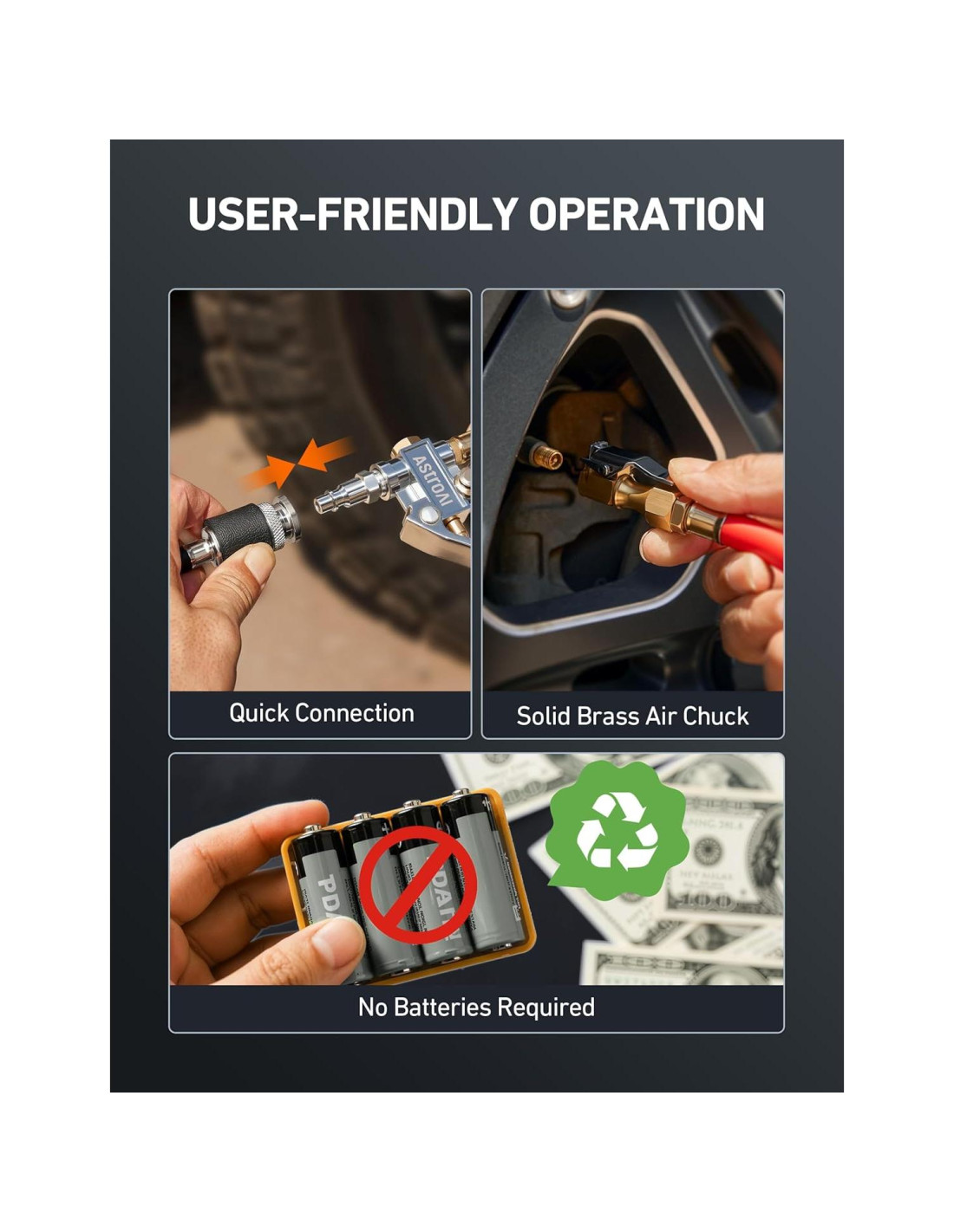 - CALIDAD SUPERIOR: Construido de acero inoxidable y latón de alta calidad, los medidores de presión de neumáticos AstroAI son duraderos para las condiciones más extremas. Puede funcionar en entornos de -14F~122F (-10C~50C), permitiéndole resolver fácilmente problemas de neumáticos donde sea y cuando sea.