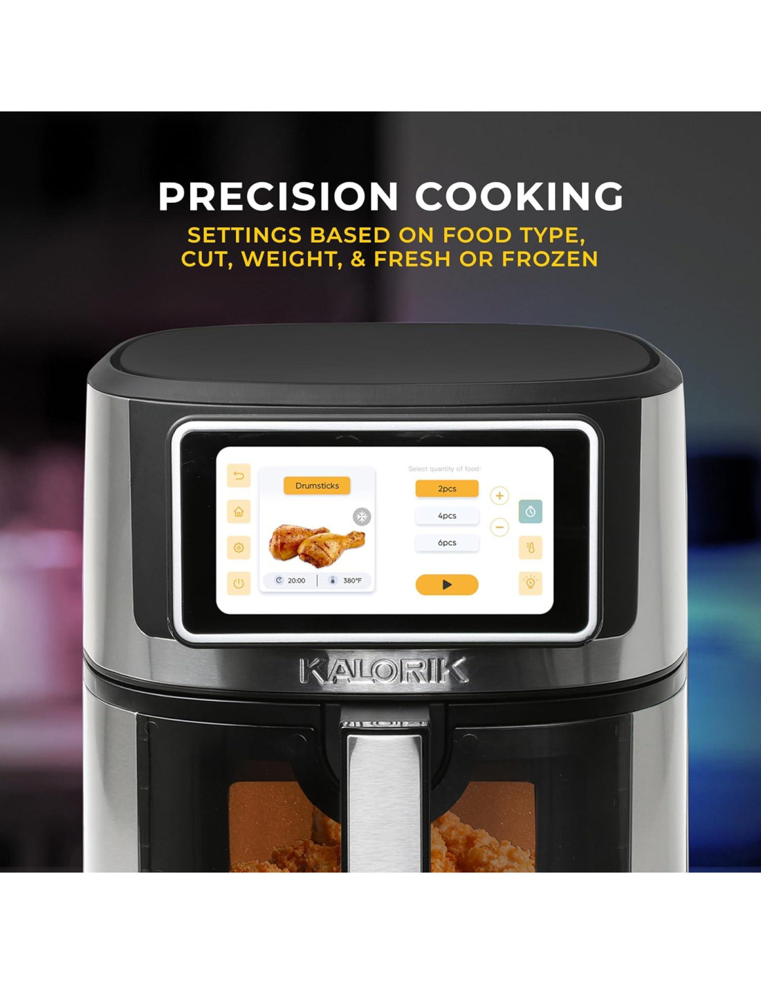 Bienvenido al futuro de la cocina con la Freidora de Aire Kalorik VIVID TOUCH de 5 Cuartos con Pantalla Táctil de Alta Resolución! Esto no es solo una freidora de aire; es una puerta a un mundo donde la innovación se encuentra con la facilidad. Navega sin esfuerzo a través de una pantalla táctil de alta resolución e innovadora, seleccionando tu plato deseado con un simple toque - es como magia al alcance de tus dedos. Con impresionantes 202 presets que abarcan 12 categorías de alimentos, esta freidora de aire no solo cocina; revoluciona la forma en que abordas la hora de la comida. Para simplificar tu proceso de cocción, la freidora de aire Kalorik VIVID TOUCH te permite personalizar configuraciones según el tipo de alimento, corte, peso, e incluso si está fresco o congelado, asegurando precisión y perfección en cada plato. Mantén un ojo en tus comidas con la ventana de visualización y la luz interior, proporcionando un vistazo a la magia que sucede dentro. Disfruta de una cocción rápida y uniforme hasta 204C sin necesidad de aceite en exceso, haciendo que las comidas más saludables sean pan comido. Experimenta un mundo de idiomas con soporte multilingüe en inglés, español, francés y mandarín, junto con la conveniencia de elegir entre Fahrenheit o Celsius. Mantente al tanto de tu juego de cocina con características como el Recordatorio de Agitar y la Alerta de Listo, asegurando que nunca te pierdas un momento. No solo un electrodoméstico de cocina, la Freidora de Aire Kalorik VIVID TOUCH es una adición elegante a tu espacio con su moderno diseño de acero inoxidable. Limpiar es muy fácil con la canasta y la bandeja aptas para lavavajillas, mientras que la espaciosa capacidad de 5 cuartos la hace perfecta para banquetes familiares o reuniones íntimas. Descubre este electrodoméstico de vanguardia, donde la excelencia culinaria se encuentra con una comodidad inigualable.