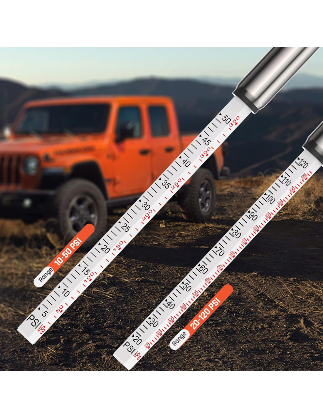 - RANGO MÁS AMPLIO: El medidor de neumáticos de ETENWOLF ofrece 2 rangos de presión: 10-50PSI (0.69-3.45 bar), 20-120PSI (1.38-8.27 bar) para todo tipo de vehículos