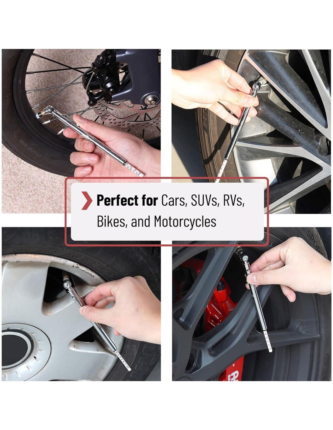 - El paquete incluye 2 medidores de presión de neumáticos construidos con componentes de acero inoxidable de alta calidad, que son resistentes a la oxidación y a la corrosión para un sellado seguro alrededor de la válvula.