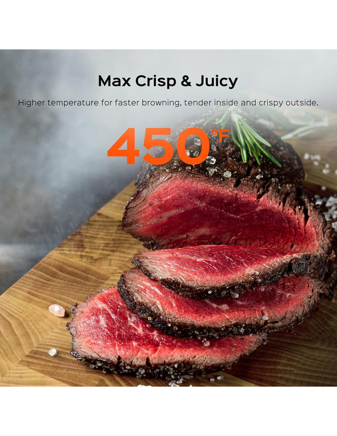 - Rango de Temperatura Amplio de 100F (37.8C) a 450F (232.2C): El rango de temperatura líder en la industria te permite hacer varios alimentos - desde pollo crujiente hasta deliciosos pasteles. Max 450F (232.2C) puede cocinar un 30% más rápido y dorar alas más fácilmente. 100F (37.8C) es la temperatura ideal para hacer yogur.
