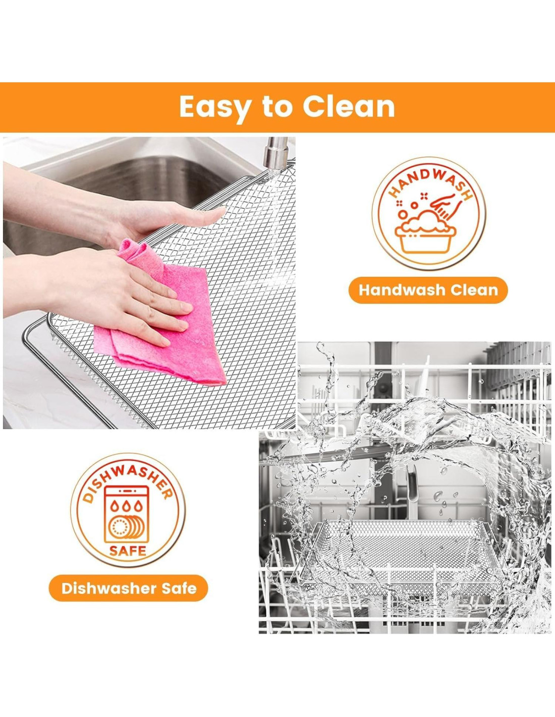 - Apto para Lavavajillas: Fácil de limpiar en el lavavajillas, las piezas de repuesto para air fryer son firmes, no se deforman fácilmente, son antiadherentes y duraderas. Incluso si el escudo contra salpicaduras se adhiere a algunos alimentos, después de un rápido remojo, se quita fácilmente, lo que hace que la limpieza sea muy sencilla. Por favor, no frotes con un paño abrasivo rugoso o bolas de metal