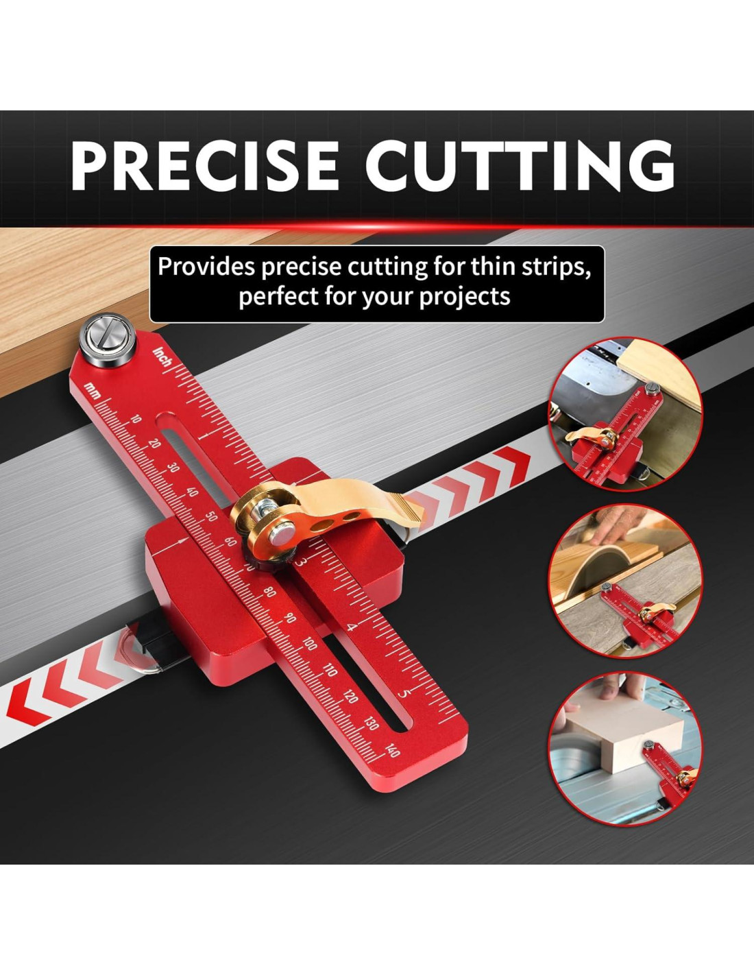- CORTE DELGADO PRECISO: El diseño preciso y ajustable de la guía de la sierra de mesa para cortes delgados incluye escalas grabadas en láser en mm y pulgadas. El diseño de cero clearance permite una fácil configuración de distancia. Configure la escala a la sierra de manera rápida y precisa para cortes de precisión.