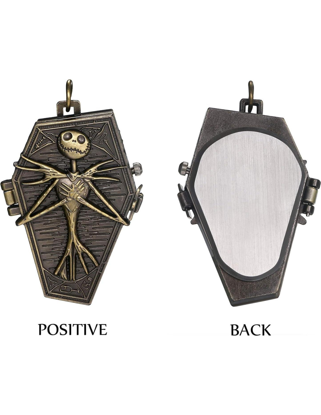 - ESTILOSO: Reloj de bolsillo vintage en forma irregular con diseño de caja de esqueleto. La impresión de Nightmare Before Christmas combina con la esfera negra. Gran elección para Halloween y Navidad. Puede ser un reloj de bolsillo útil y un elegante collar, que te traerá muchos cumplidos.