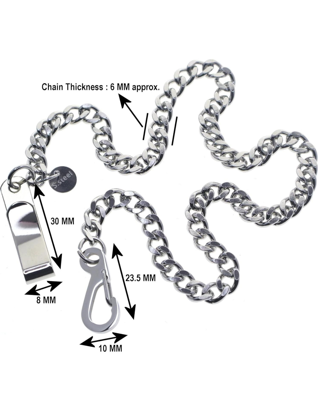 - Longitud Total del Artículo (aproximado): 15 1/8 Pulgadas (38 CM) - Cadena Cubana de Acero de 12.5" + Clip de Cintura de Acero de 32 X 8 MM + Cierre de Acero de 23.5 X 10 MM