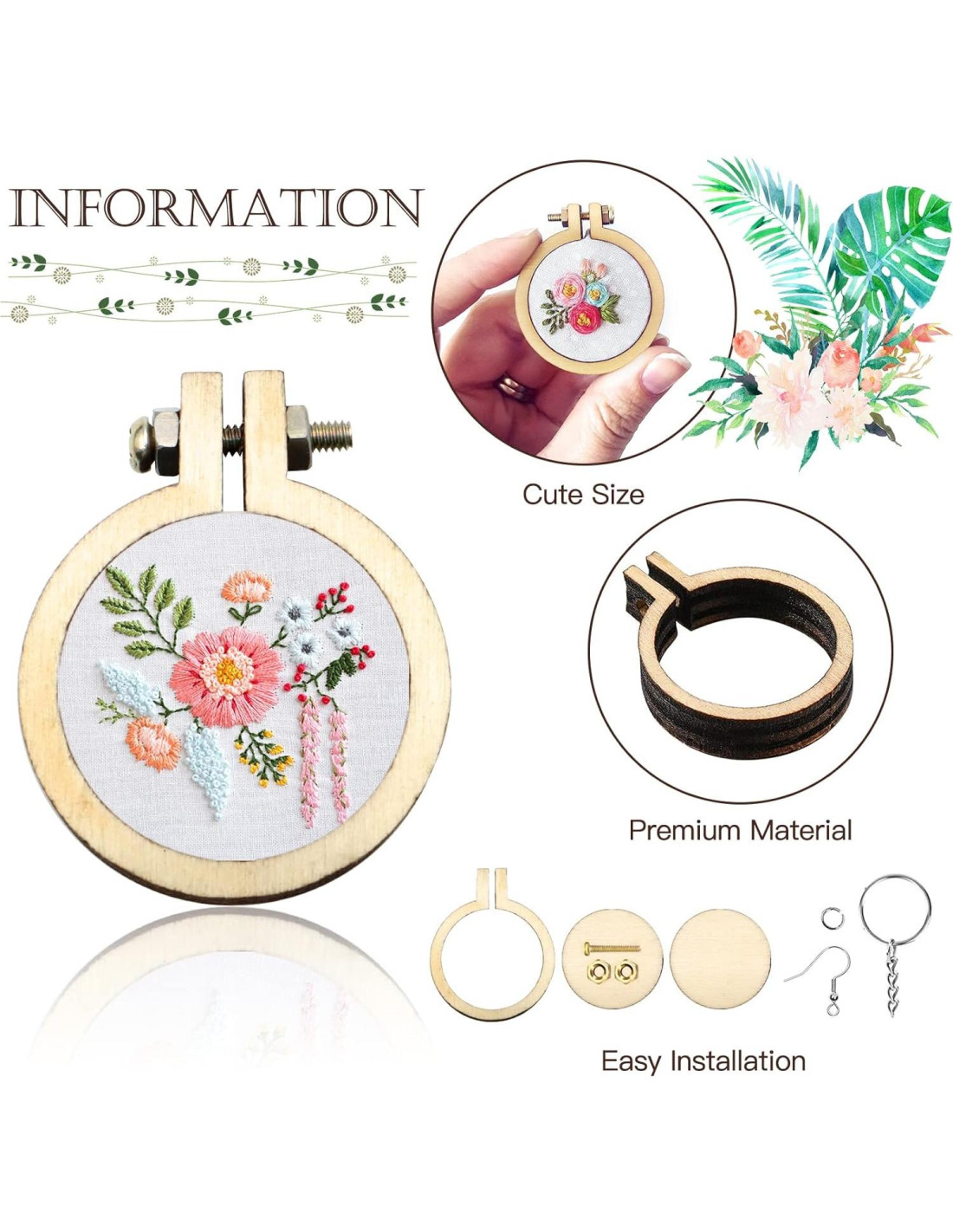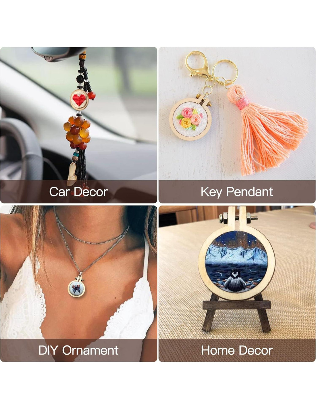 - [REGALO CREATIVO DE BORDADO] : --- Perfecto para hacer llaveros, colgantes, pendientes, collares, etc., el pequeño aro de bordado viene en una gran variedad, atendiendo a los entusiastas del bordado que prefieren diseños novedosos y artesanías DIY exquisitas. ¡Una buena opción de regalo personalizado!