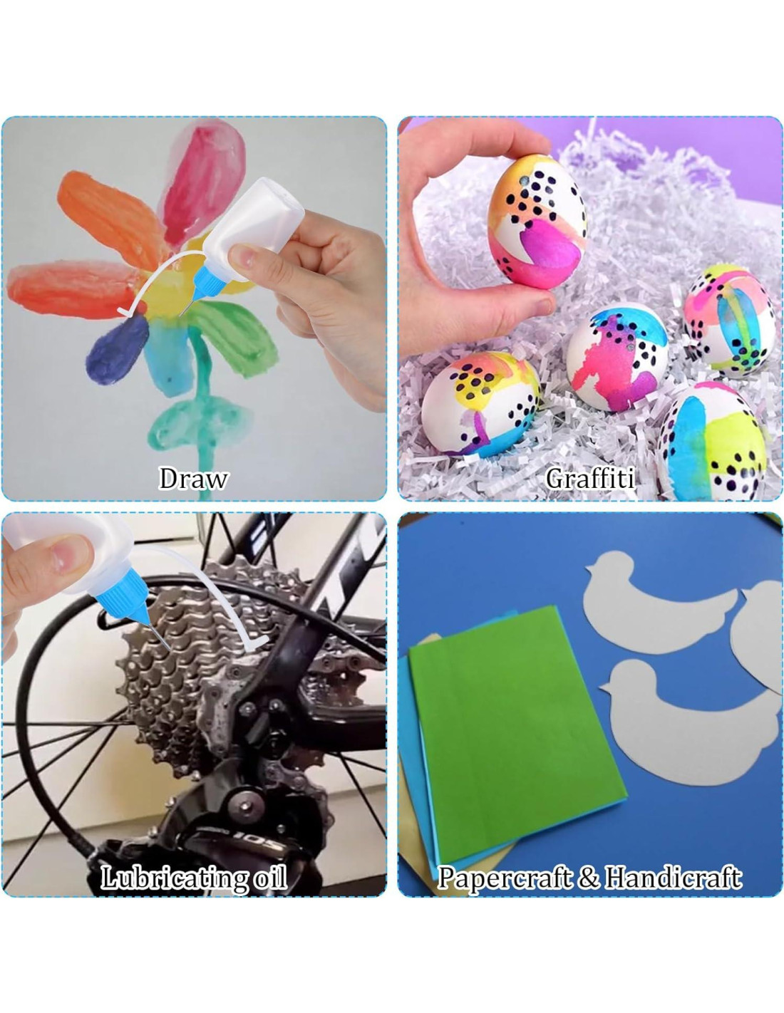 - [Paquete Incluido] : Incluye 12 botellas de squeeze con punta de aguja, 2 de cada color (negro, naranja, blanco, amarillo, rojo, azul), además de 5 mini embudos; las botellas de pegamento son suficientes para satisfacer una variedad de necesidades, 6 colores, fácil de distinguir líquidos