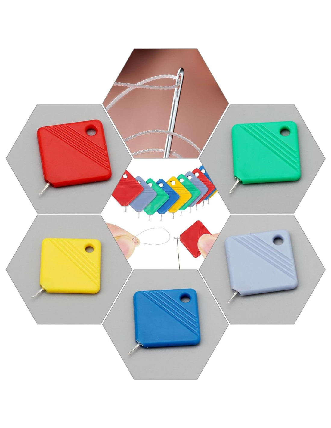 - [Compacto y Conveniente] : El Enhebrador Automático de Agujas está hecho de plástico y metal, diseñado para adaptarse a la mayoría de las personas y viene con un gancho de metal en la parte frontal para un enhebrado sin esfuerzo. Además, los pequeños agujeros en la hoja de plástico permiten una fácil suspensión, proporcionando un acceso rápido cuando no está en uso.