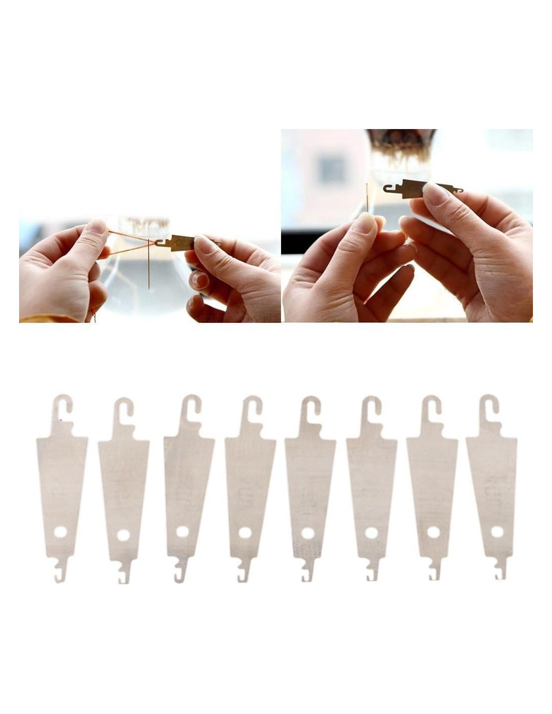 Descripción: Nuevo y de alta calidad Ideal para enhebrar agujas de punto de cruz Muy conveniente de usar y te ayuda a hacer costura de bricolaje Por favor, sigue las instrucciones como se muestra en la imagen: inserta el dispositivo a través de la aguja, enrolla el hilo en él y luego saca el hilo del agujero Material: Acero inoxidable Tabla de tamaños: Longitud: Aproximadamente 5 cm (1.97 pulgadas) Ancho de la base grande: Aproximadamente 0.5 cm Ancho de la base pequeña: Aproximadamente 0.25 cm El paquete incluye: 100 x Dispositivo de enhebrado de agujas
