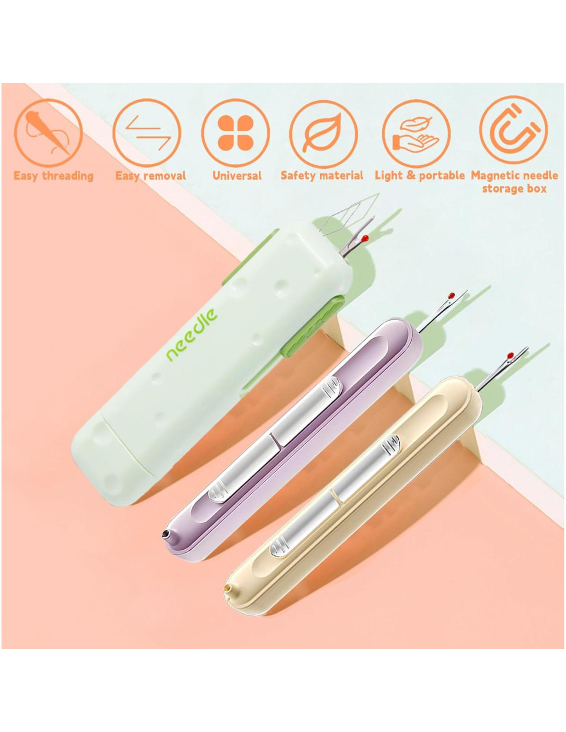 - [Enhebradores de Agujas Multifuncionales] Este set de enhebradores de agujas para coser a mano incluye 2 enhebradores automáticos 2 en 1 y un enhebrador 3 en 1 con caja de almacenamiento, que no solo se puede usar para quitar puntadas, sino que también ayuda a enhebrar y almacenar agujas para satisfacer tus necesidades diarias de costura.