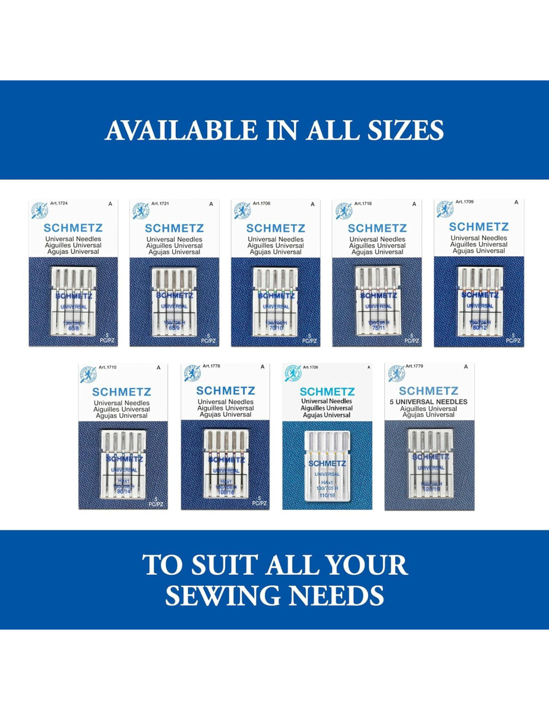 - COSTURA HECHA SIMPLE: Las Agujas Universales Schmetz funcionan con todas las máquinas de coser domésticas y manejan todo, desde algodón delicado hasta denim grueso, haciéndolas perfectas para cualquier proyecto de acolchado, bordado, manualidades o decoración del hogar
