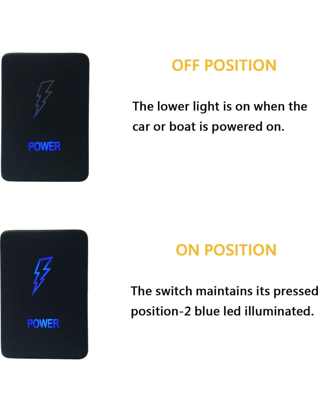 - Interruptor de botón pulsador SPST (polo único, paso único) con LED azul dual encendido-apagado, viene con el conector de cableado, conveniente para que lo instales.