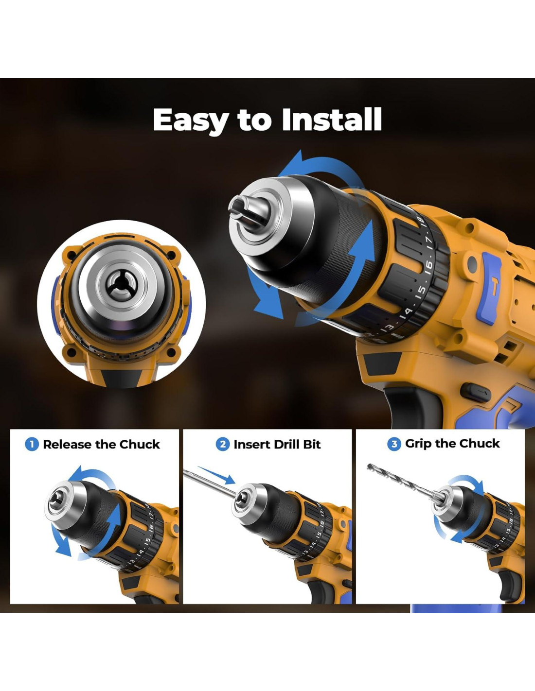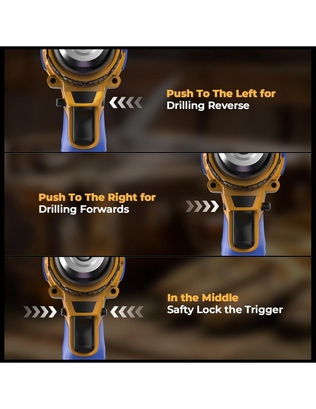 - [Ergonómico y Ligero] Mantén tus manos en el taladro de potencia con un mango a prueba de golpes y antideslizante y un agarre adicional para un agarre cómodo. Cambia fácilmente entre operación con la mano izquierda y derecha para reducir la fatiga durante el uso. Además, con su luz de trabajo LED, puedes trabajar fácilmente en condiciones de poca luz por la noche