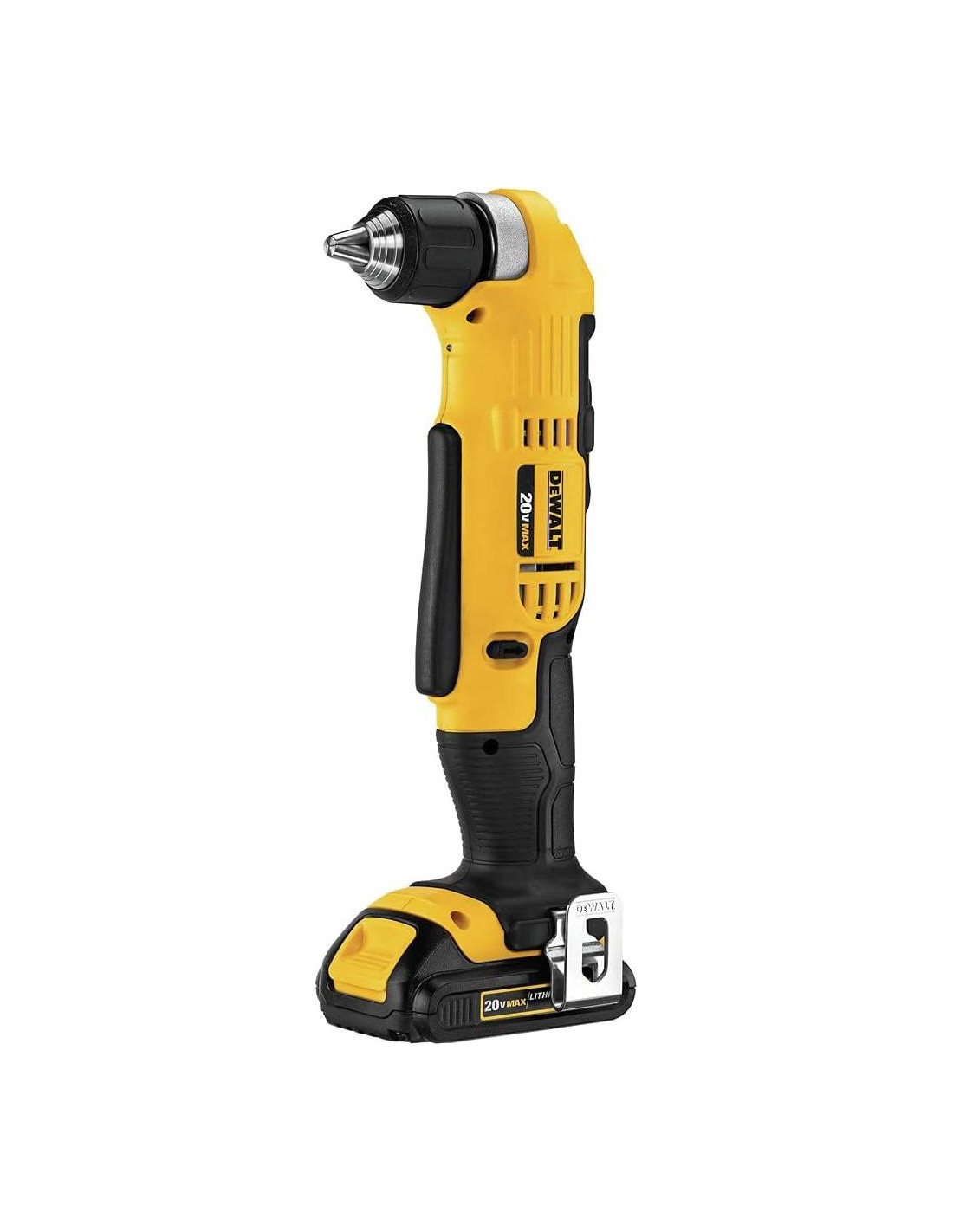 - Componentes incluidos: Batería Li-Ion Compacta de 20V Max 1.5 Ah | Cargador | Caja de Kit | Gancho para Cinturón | Taladro/Atornillador en Ángulo Derecho DCD740 de 3/8"