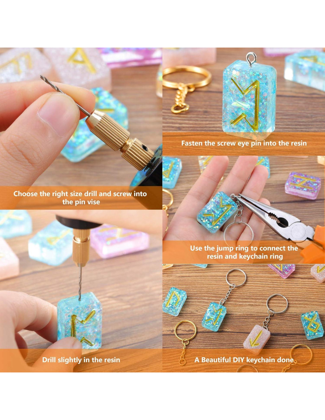 - Juego de fabricación de joyas de resina eléctrica: estas herramientas de taladro eléctrico están diseñadas para la fabricación de joyas de resina, el pin vise te ayudará a perforar pequeños agujeros en la resina fácilmente, brindándote mucha comodidad para hacer collares, aretes, pulseras, colgantes, llaveros, modelos, etc.