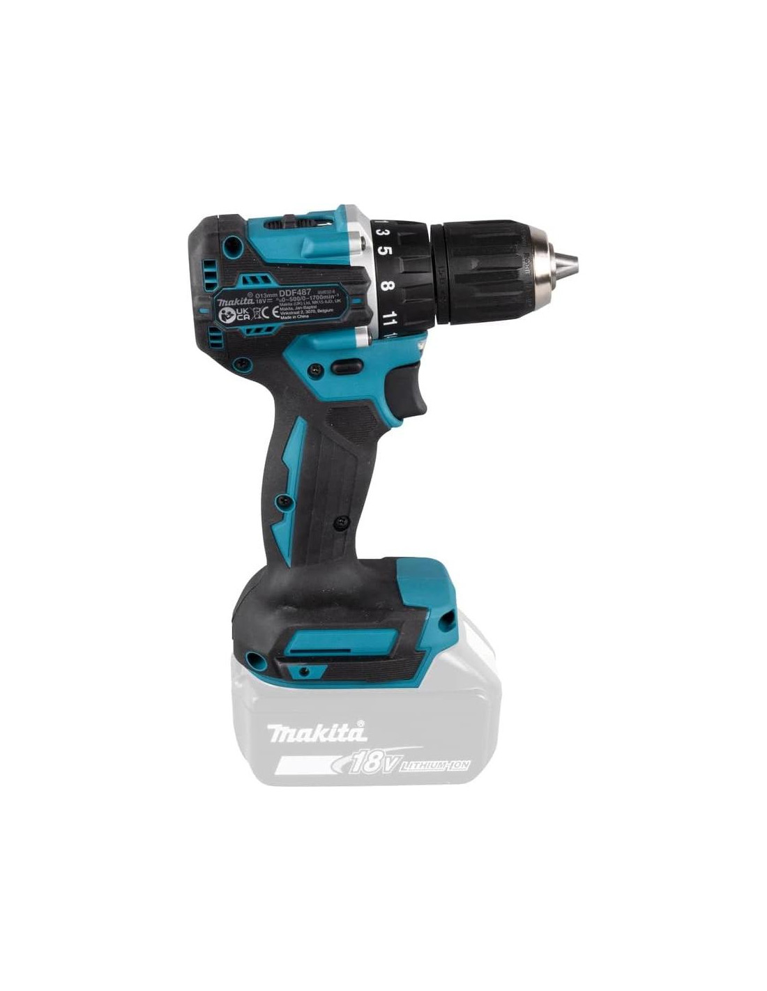 Makita es el fabricante líder de herramientas eléctricas profesionales en el mercado. El DDF487Z es un taladro inalámbrico compacto, de 150mm de longitud, alimentado por una batería de tipo deslizante de 18V Li-ion LXT (no incluida) para suministrar energía al potente motor sin escobillas de 18V, con control de velocidad variable, para entregar hasta 1,700 rpm y 40Nm de par máximo de apriete para una amplia gama de aplicaciones de perforación y atornillado. El DDF487Z está equipado con 2 engranajes mecánicos; modo de alta velocidad para perforaciones rápidas en aplicaciones de trabajo ligero y modo de baja velocidad para aplicaciones de trabajo pesado que requieren alto par, 20 configuraciones de par más modo de perforación para un mayor control de atornillado, freno eléctrico para aumentar la seguridad del operador, mandril sin llave de 13mm de una sola manga para instalaciones y retiradas rápidas y fáciles de brocas y luz LED de trabajo para iluminar el área de trabajo. El DDF487Z cuenta con un circuito de protección de batería, diseñado para proteger la batería de daños debido a sobre-descarga, sobrecalentamiento y sobrecarga. El DDF487Z no es compatible con baterías de la serie G. Garantía del fabricante de 1 año con 2 años adicionales cuando se registra dentro de los 30 días posteriores a la compra. Esta garantía no se aplica donde se instalen piezas o accesorios no genuinos o recomendados en la herramienta. El uso de baterías y cargadores no genuinos o compatibles con herramientas Makita invalidará la garantía de Makita para nuestras herramientas.