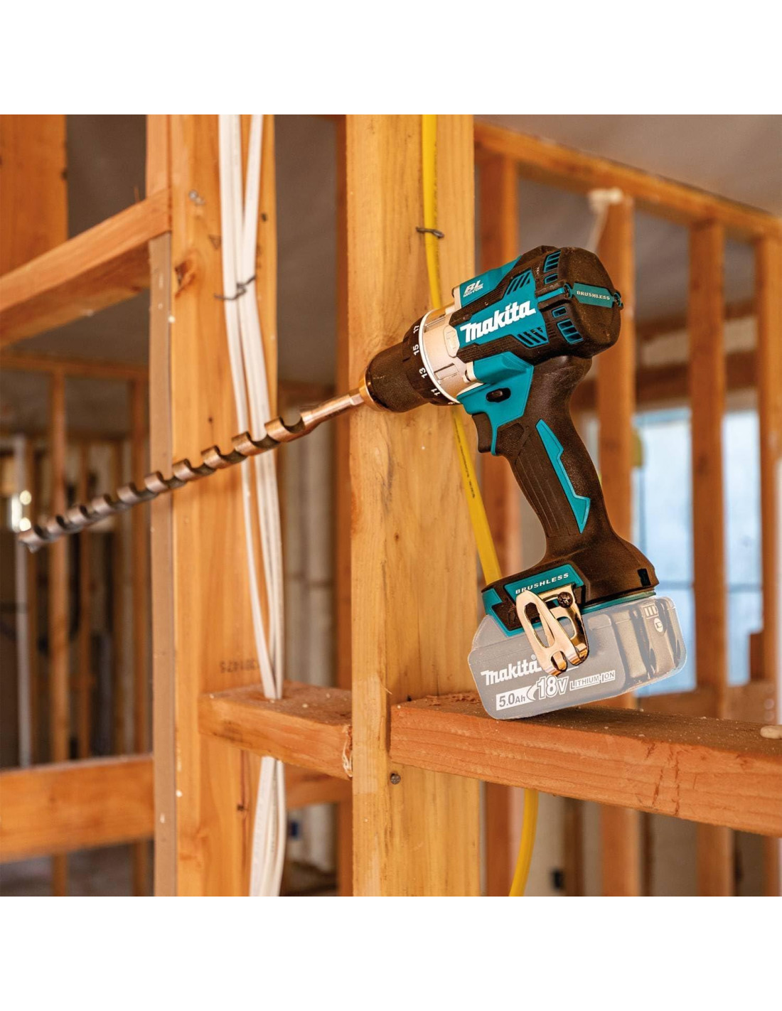 18V LXT Sin Escobillas 1/2" Martillo Taladro, Solo Herramienta (XPH16Z) cuenta con un motor sin escobillas construido por Makita que entrega 970 in.lbs. (109.8 Nm) de Torque Máximo para hasta un 70% más de potencia que el modelo anterior para las aplicaciones de perforación y atornillado más exigentes. Está impulsado por un motor sin escobillas de Makita para un mayor tiempo de funcionamiento, mayor potencia y velocidad, y mayor vida útil de la herramienta. Presenta un diseño variable de 2 velocidades (0-550 & 0-1,800 RPM) (0-8,250 & 0-27,000 BPM) que cubre una amplia gama de aplicaciones de perforación, atornillado y martillo. También cuenta con una carcasa de engranaje completamente metálica de 1/2" para mayor durabilidad en el lugar de trabajo. Las características de conveniencia incluyen un diseño compacto y ergonómico de solo 6-7/8" (17.5 cm) de largo, luces LED duales y un agarre suave de goma para mayor comodidad. Pesa solo 4.9 lbs. (2.2 kg) con una batería de 5.0Ah para reducir la fatiga del operador (batería se vende por separado). Es parte del sistema 18V LXT en expansión de Makita, el sistema de herramientas inalámbricas más grande del mundo alimentado por baterías de litio-ion de estilo deslizante de 18V. Las baterías de Litio-Ion Makita 18V LXT tienen los tiempos de carga más rápidos en sus categorías, por lo que pasan más tiempo trabajando y menos tiempo sentadas en el cargador. Para mejorar el rendimiento de la herramienta y extender la vida de la batería, Makita creó Star Protection Computer Controls. Star Protection es una tecnología de comunicación que permite que la herramienta y la batería equipadas con Star Protection intercambien datos en tiempo real y monitoreen las condiciones durante el uso para proteger contra sobrecargas, sobredescargas y sobrecalentamiento. Para mayor versatilidad, la herramienta también puede ser alimentada por baterías de Litio-Ion Makita 18V LXT con el símbolo de estrella en la batería que indica Star Protection en su interior. *Comparado con XPH12.