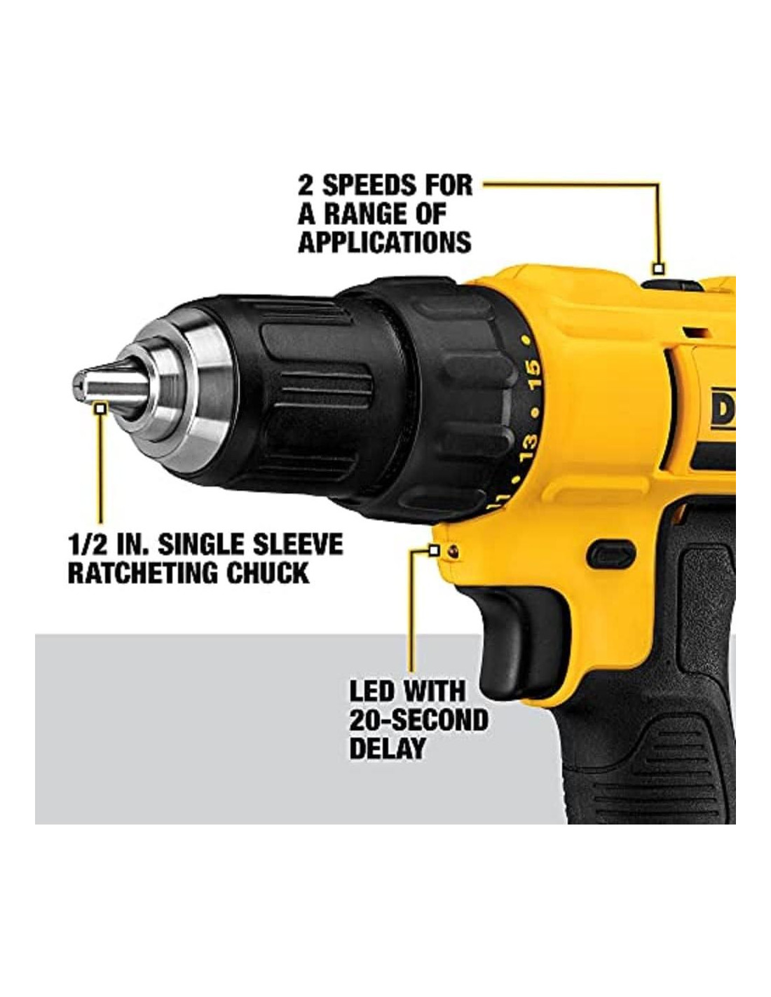 - La transmisión de alta velocidad del taladro Dewalt 20V ofrece 2 velocidades (0-450 & 1,500 rpm) para una variedad de aplicaciones de atornillado y perforación