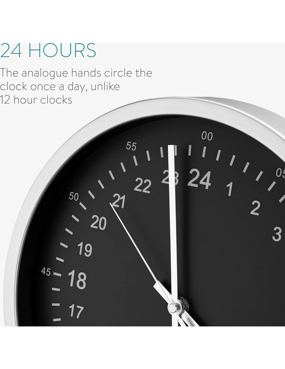 - MOVIMIENTO SUAVE: Este reloj analógico de 24 horas presenta un diseño sin tictac para un movimiento suave que se desplaza de manera discreta alrededor del reloj.