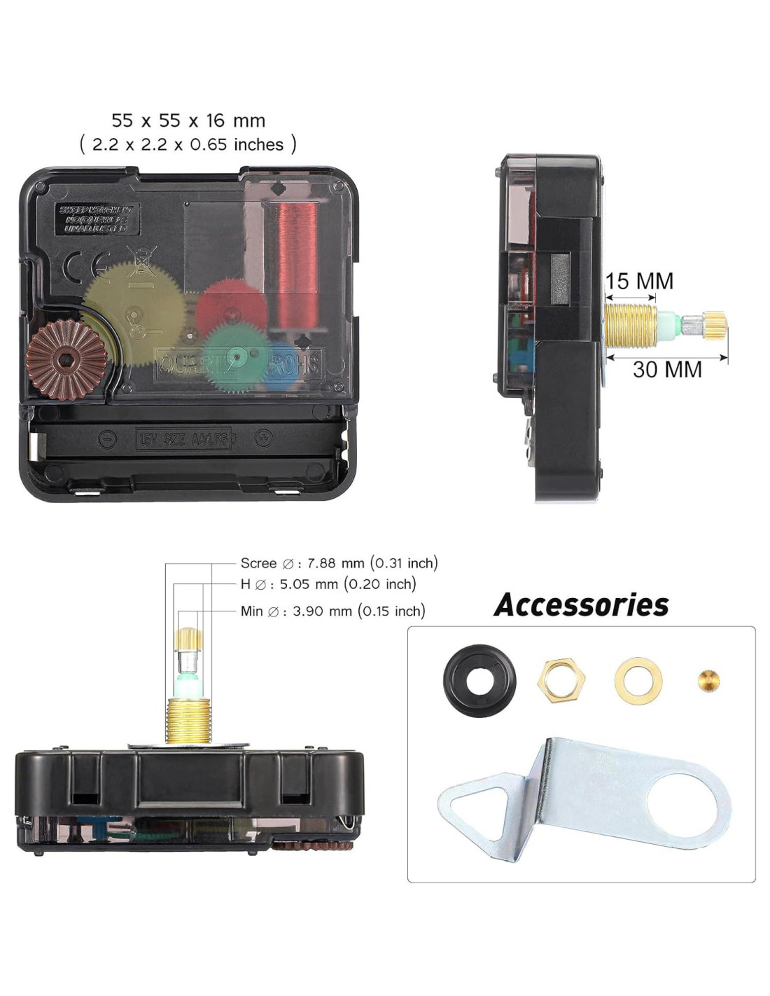 - Información del paquete: recibirás 2 piezas de mecanismos de reloj de cuarzo, 2 piezas de herramientas de junta, 2 piezas de ganchos de metal y 2 tipos de manecillas de reloj de madera de nogal en 2 colores, incluyendo negro y color madera, solo apto para reloj de 16 pulgadas
