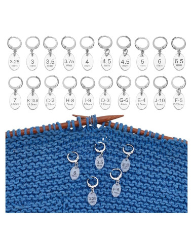 - Marcadores de Puntos Ovalados -- Cada óvalo está etiquetado con información sobre un tamaño diferente, así que elige los marcadores que deseas usar según tu proceso, para que puedas recordar fácilmente el tamaño de las agujas de tejer que estás usando o el tamaño de los ganchos de crochet que necesitarás preparar con anticipación para otros proyectos, para hacer que tus proyectos de manualidades DIY sean más eficientes.