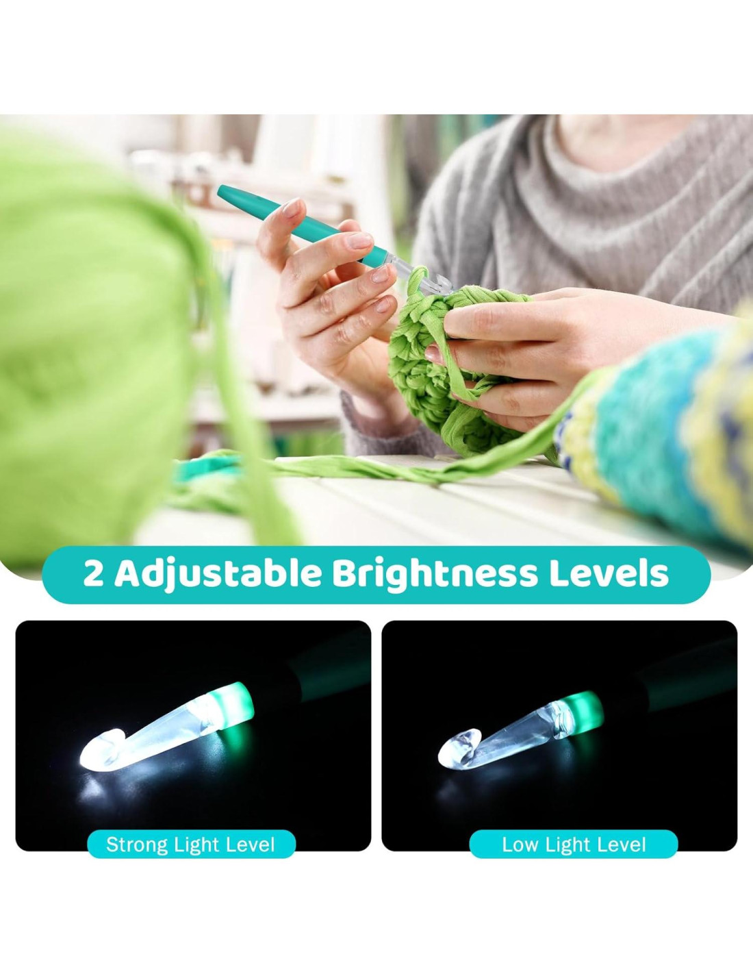 - Linterna Extra - Con el clic de un botón en el mango, el ganchillo se puede iluminar, adecuado para trabajar en la oscuridad de la noche.
